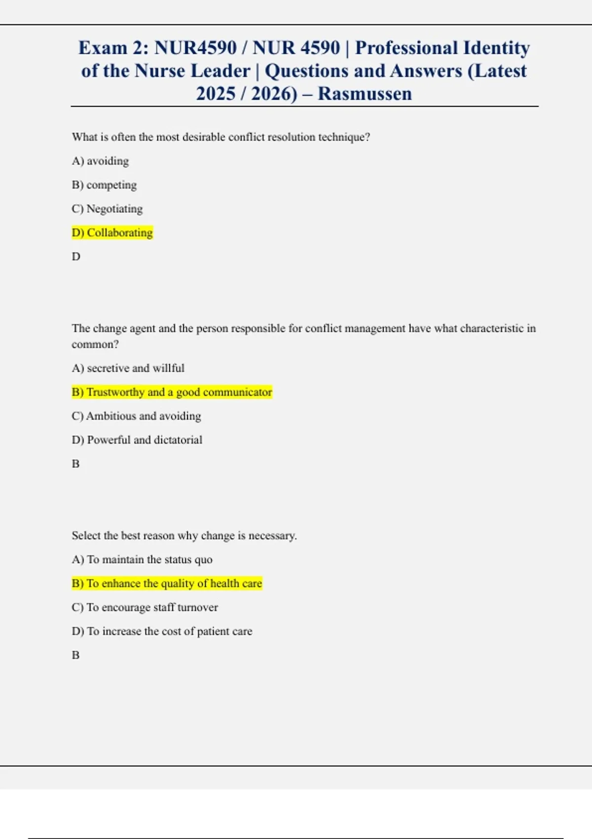 Exam 2: NUR4590 / NUR 4590 | Professional Identity