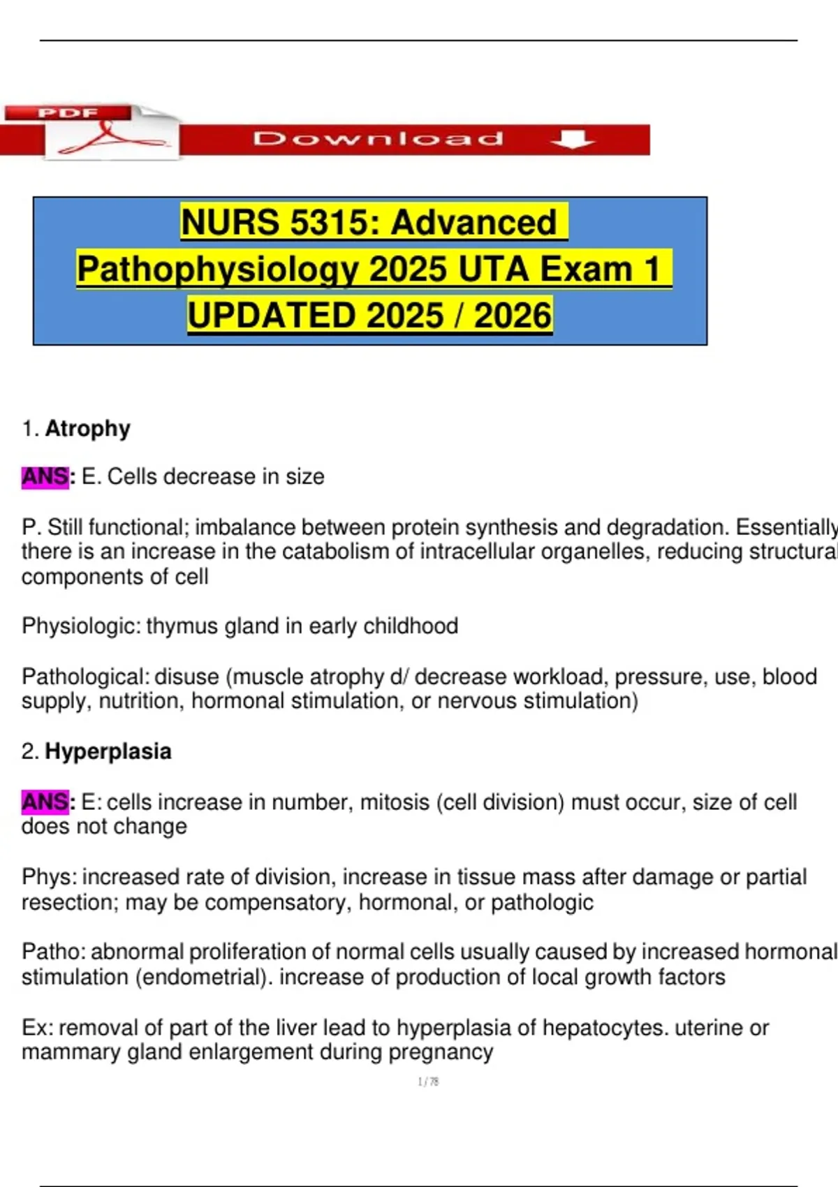 ANS: E. Not true adaptation; Cells abnormal change in size, shape, organi- zation