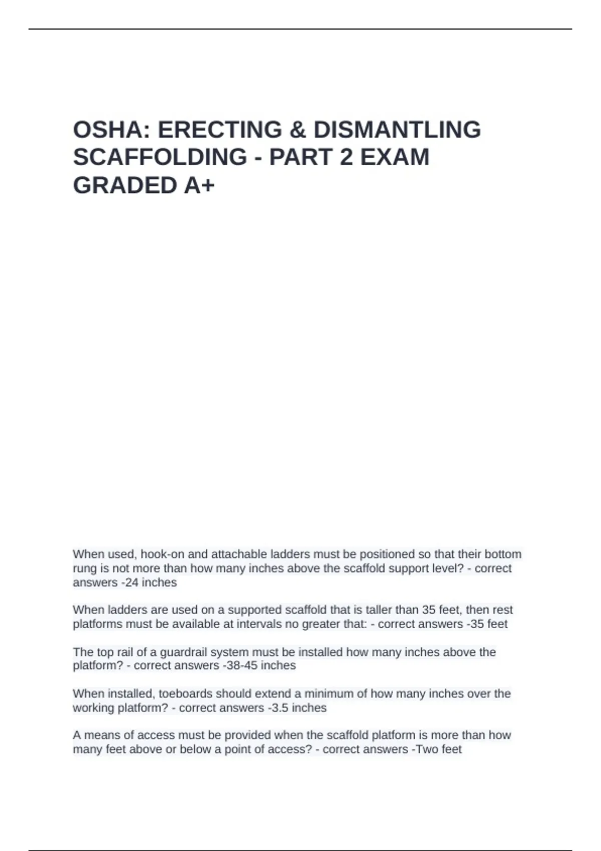OSHA - Erecting & Dismantling Scaffolding - Part 2 exam graded A+