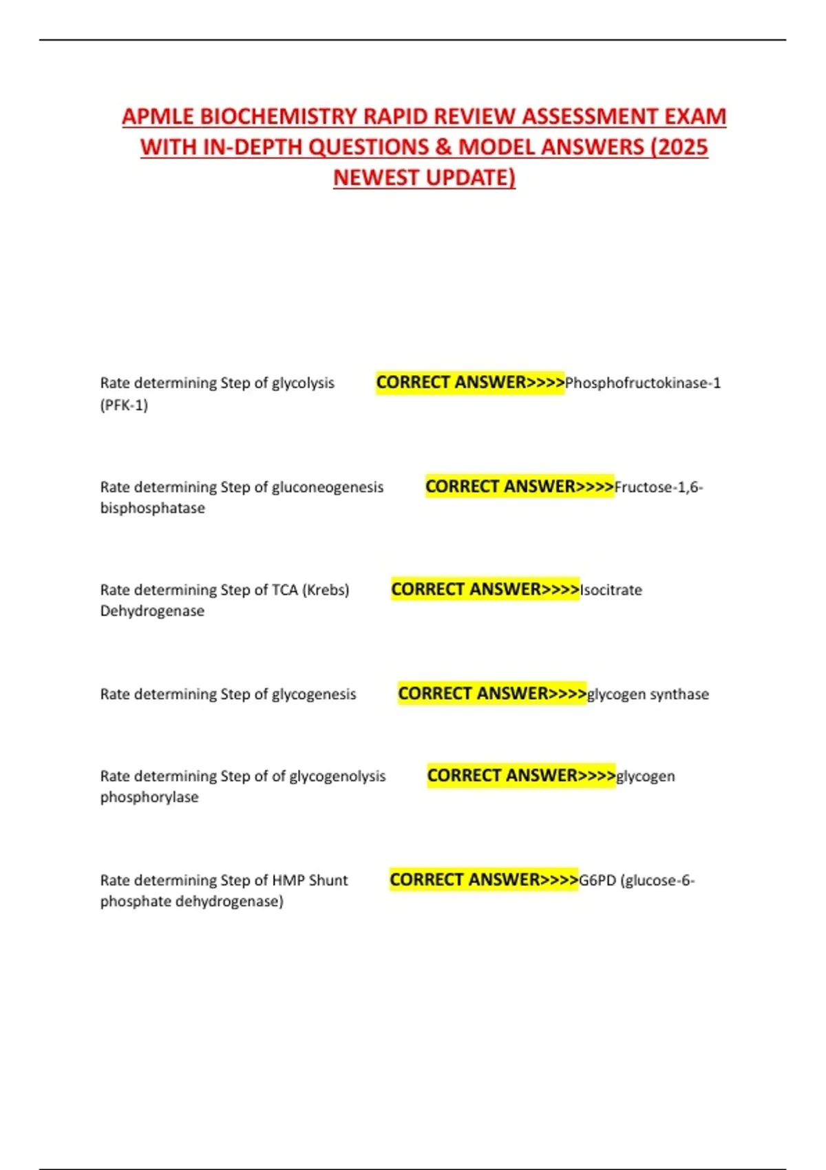 APMLE BIOCHEMISTRY RAPID REVIEW ASSESSMENT EXAM