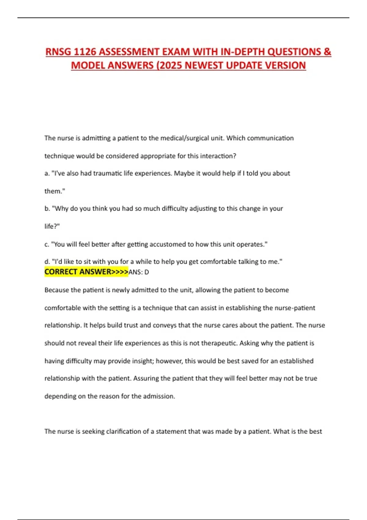 RNSG 1126 ASSESSMENT EXAM WITH IN-DEPTH QUESTIONS &
