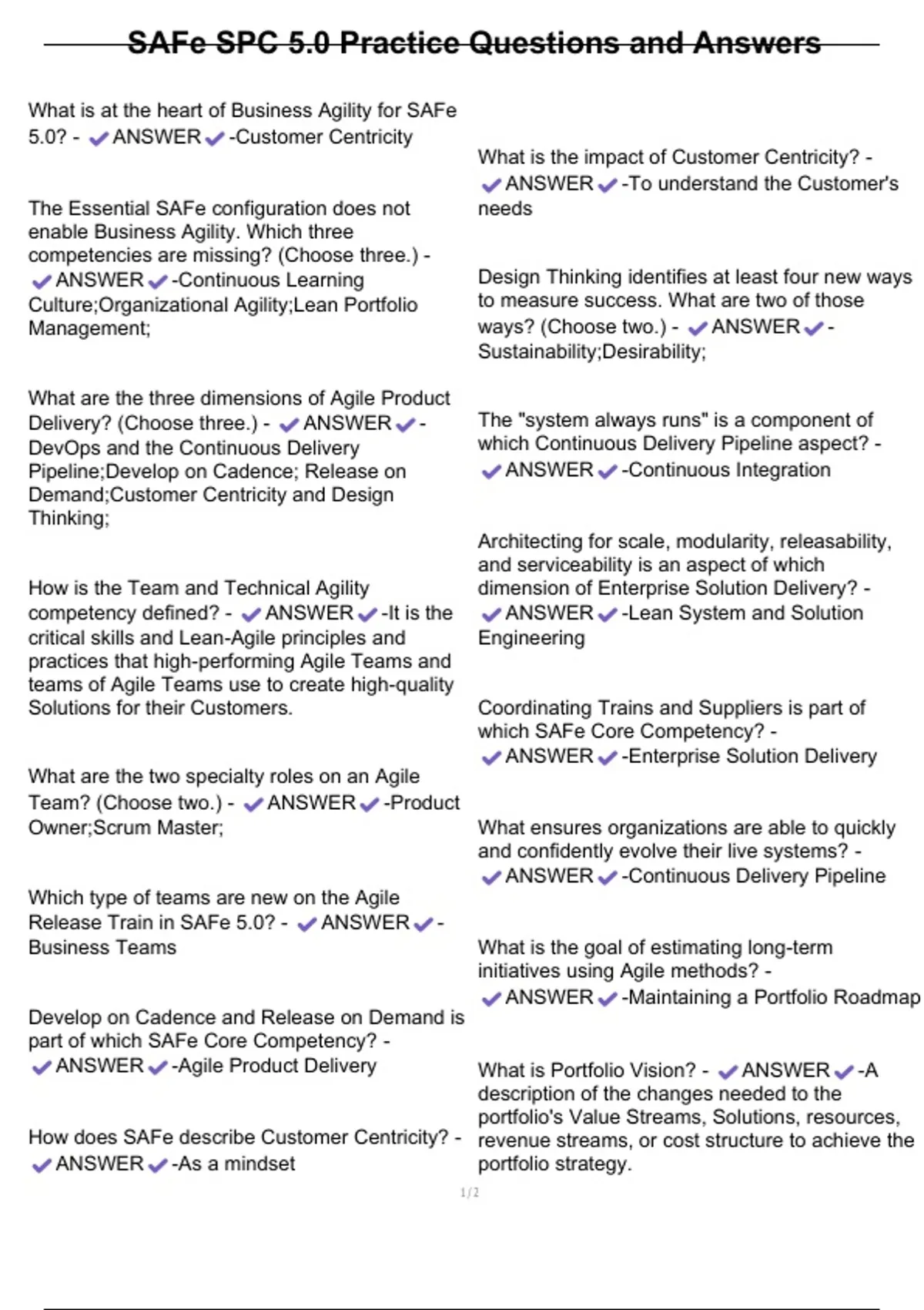 5.0? - ANSWER -Customer Centricity