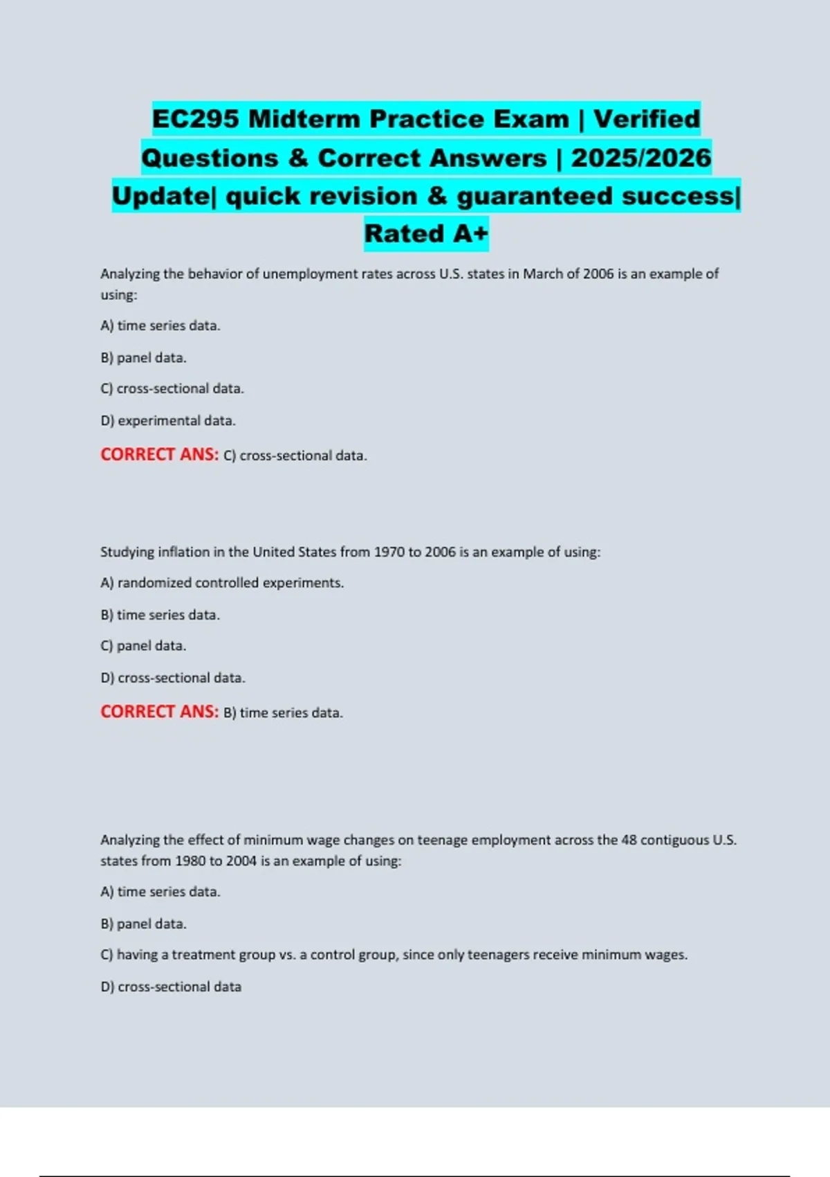 EC295 Midterm Practice Exam | Verified