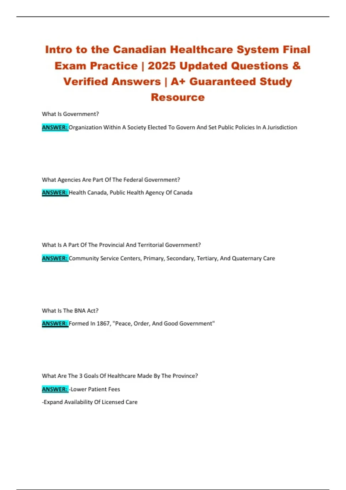 Intro to the Canadian Healthcare System Final