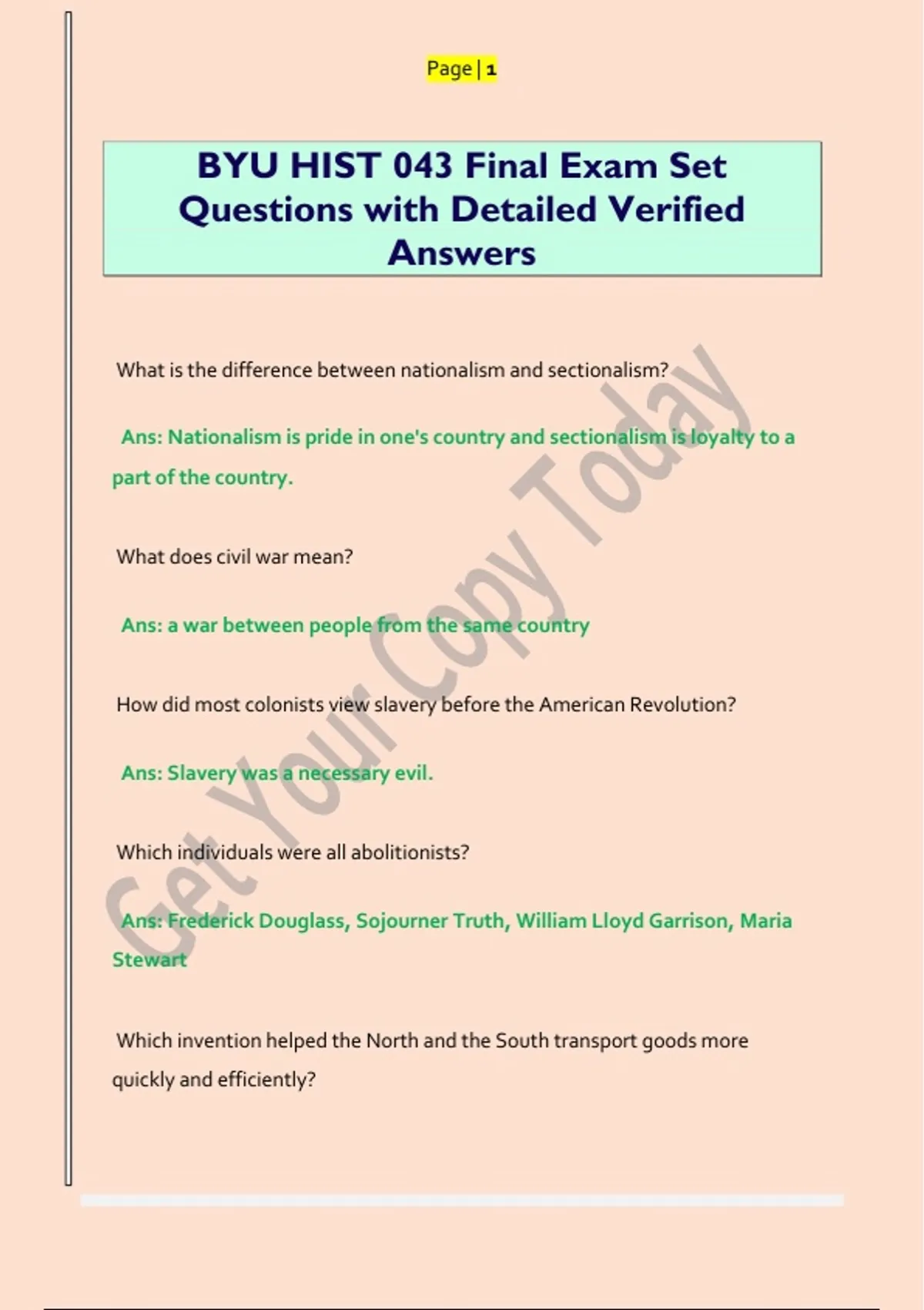 BYU HIST 043 Final Exam Set