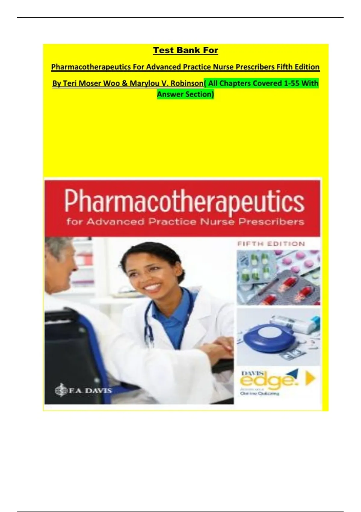 Test Bank For Pharmacotherapeutics For Advanced Practice Nurse Prescribers Fifth Edition By Teri Moser Woo & Marylou V. Robinson( All Chapters Covered 1-55 With Answer Section) Test Bank For Pharmacotherapeutics For Advanced Practice Nurse Prescribers Fifth Edition By Teri Moser Woo & Marylou V. Robinson( All Chapters Covered 1-55 With Answer Section)