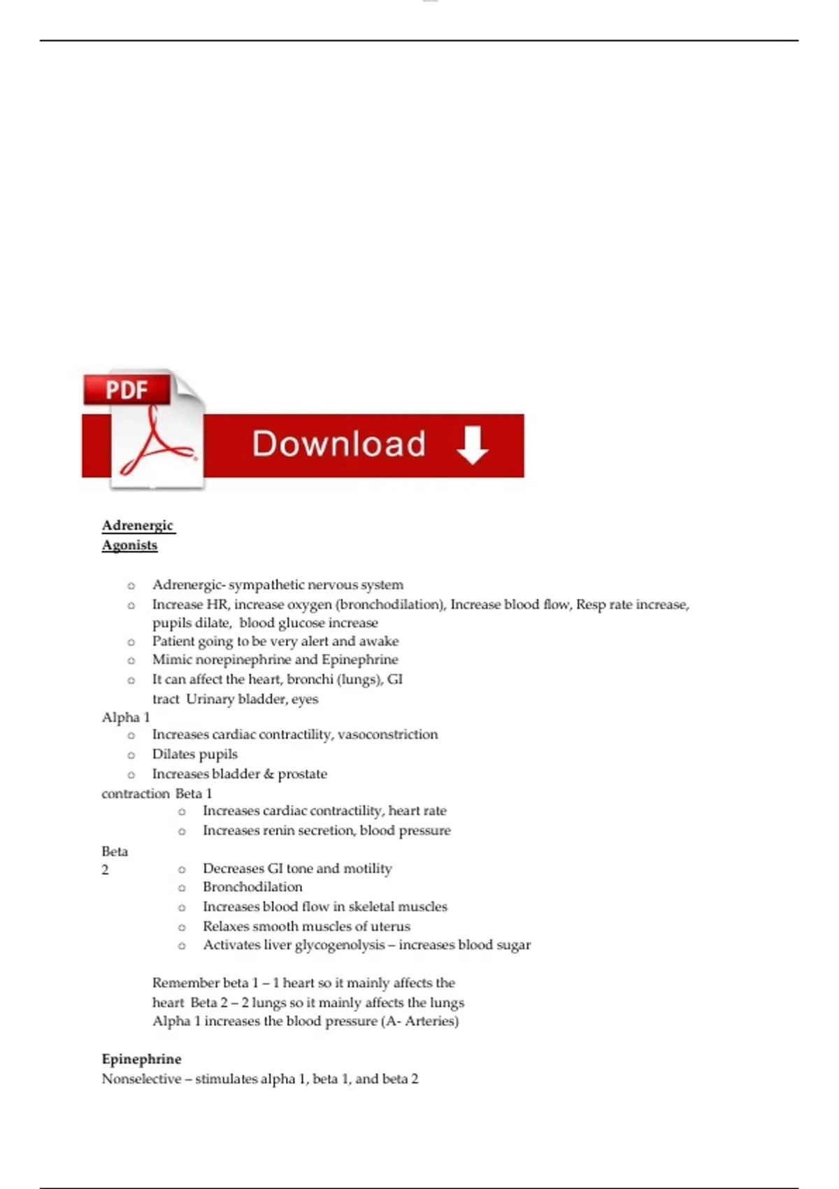 Nonselective – stimulates alpha 1, beta 1, and beta 2