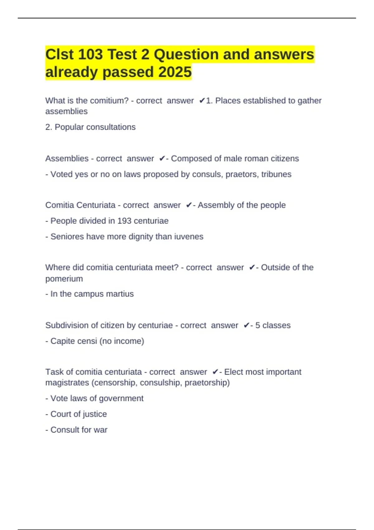 Comitia Centuriata - correct answer ✔- Assembly of the people