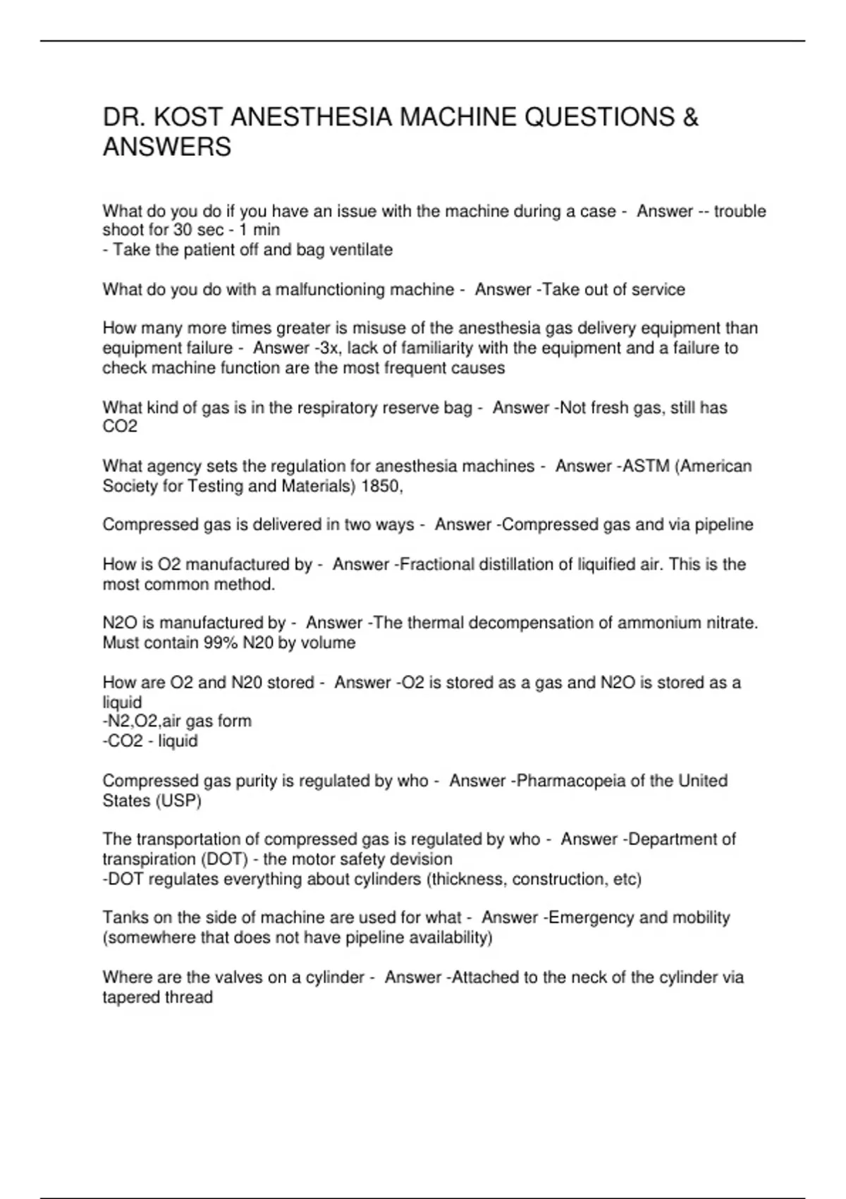 DR. KOST ANESTHESIA MACHINE QUESTIONS &