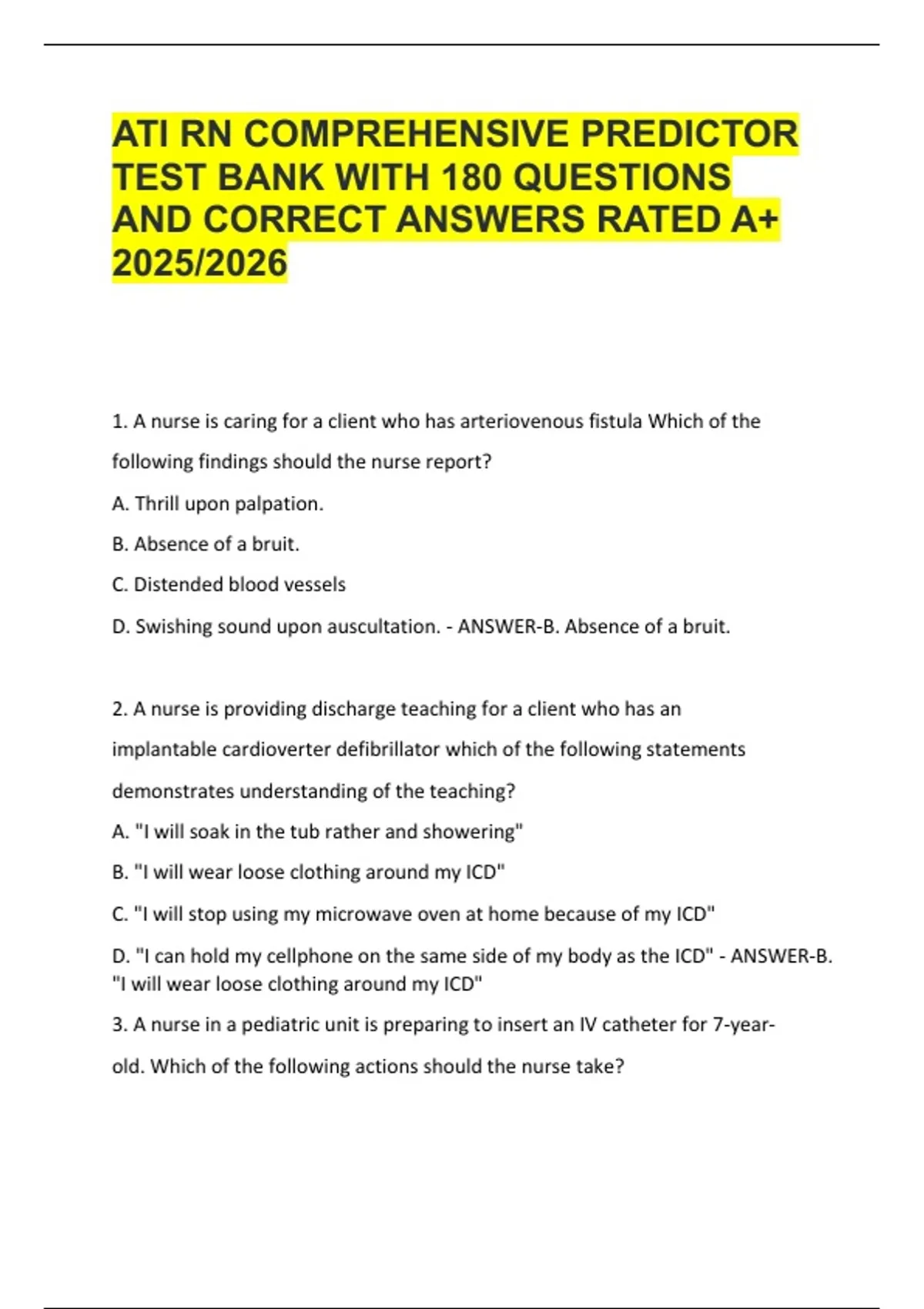 1. A nurse is caring for a client who has arteriovenous fistula Which of the