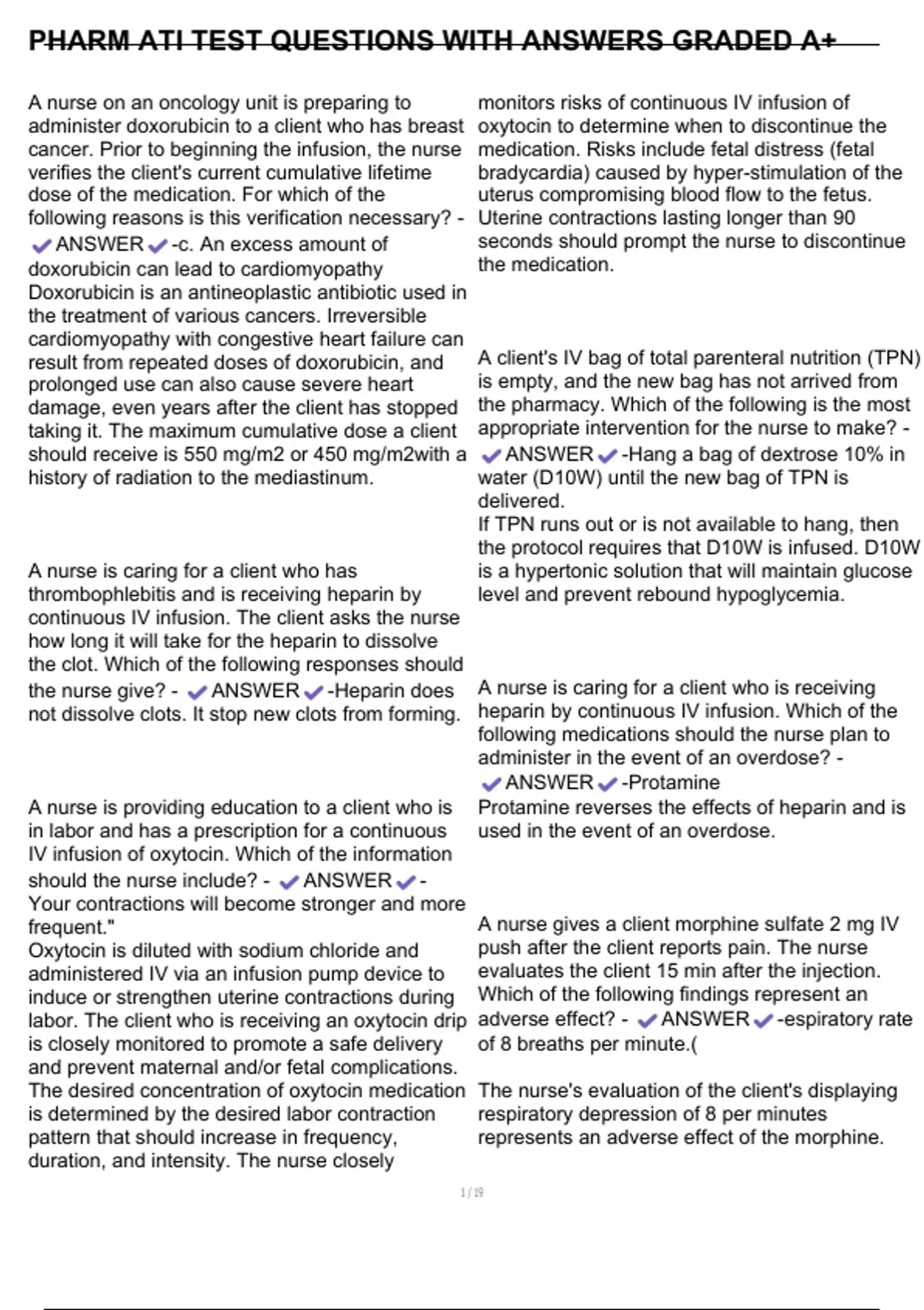 , PHARM ATI TEST QUESTIONS WITH ANSWERS GRADED A+