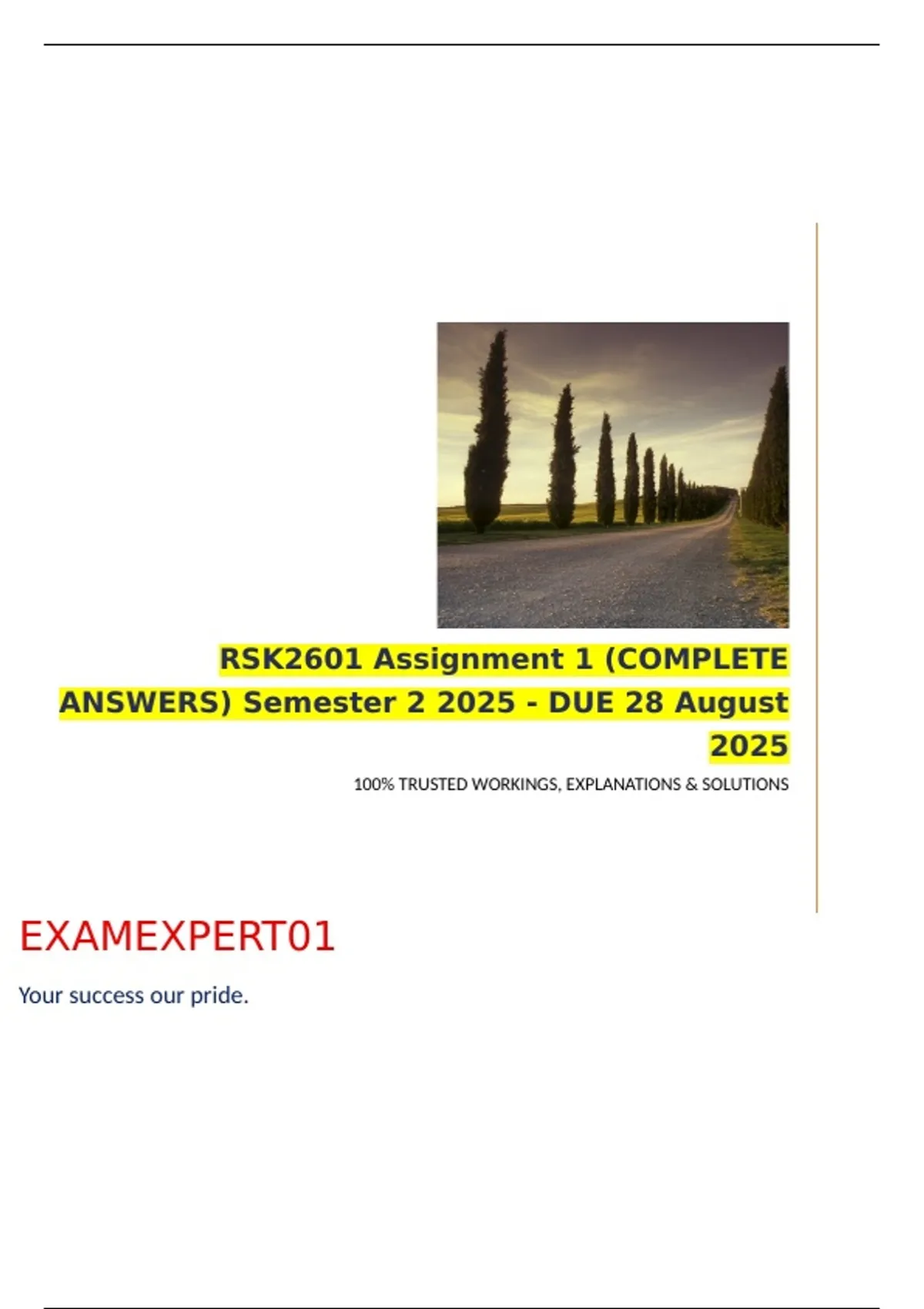 RSK2601 Assignment 1 (COMPLETE ANSWERS) Semester 2 2025 - DUE 28 August 2025