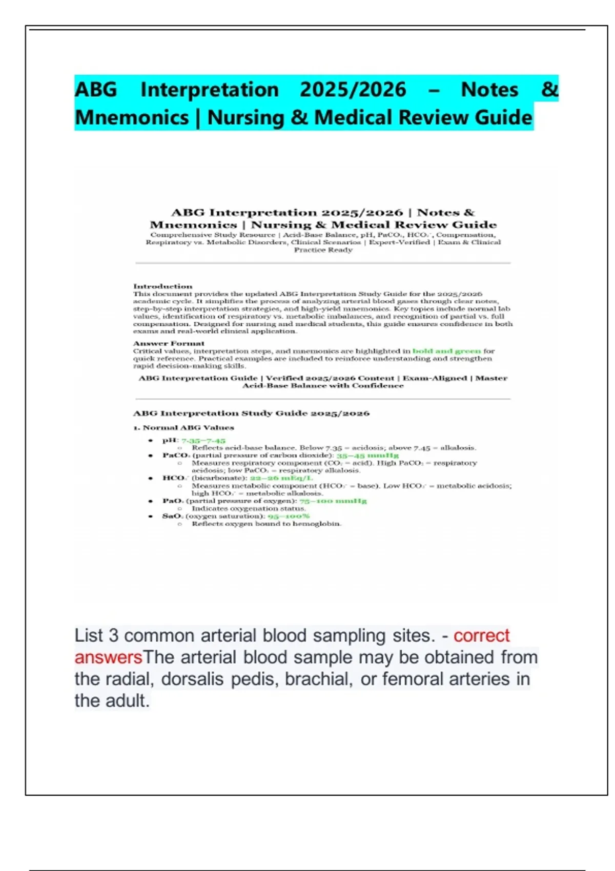 ABG Interpretation 2025/2026 – Notes & Mnemonics | Nursing & Medical Review Guide