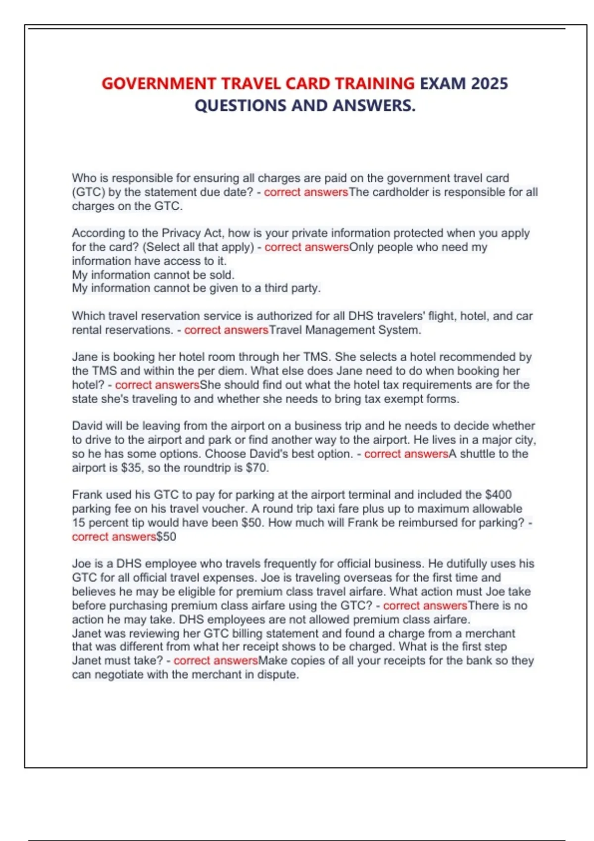 GOVERNMENT TRAVEL CARD TRAINING EXAM 2025 QUESTIONS AND ANSWERS