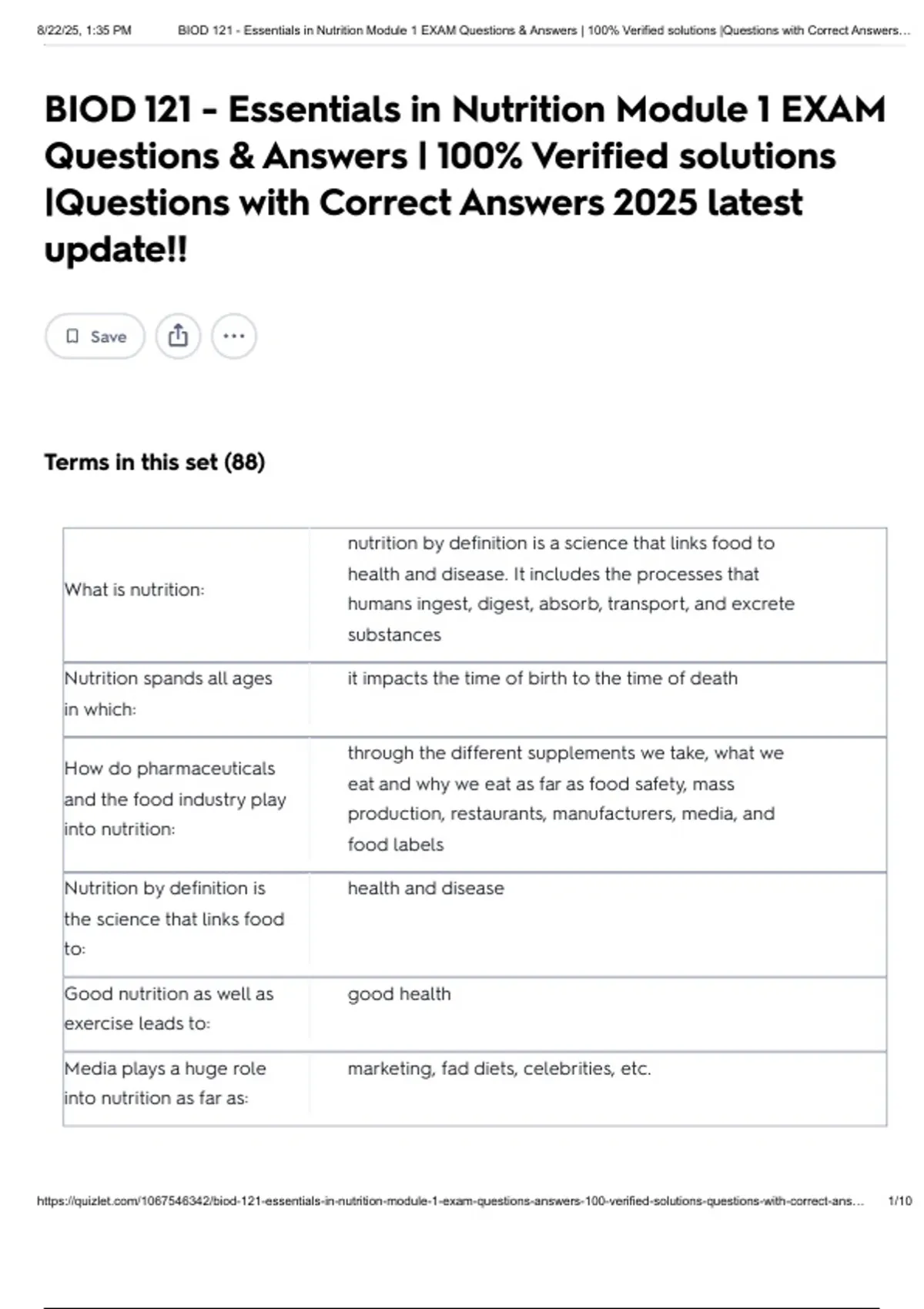 , 8/22/25, 1:35 PM BIOD 121 - Essentials in Nutrition Module 1 EXAM Questions & Answers | 100% Verified solutions |Questions with Correct Answers…