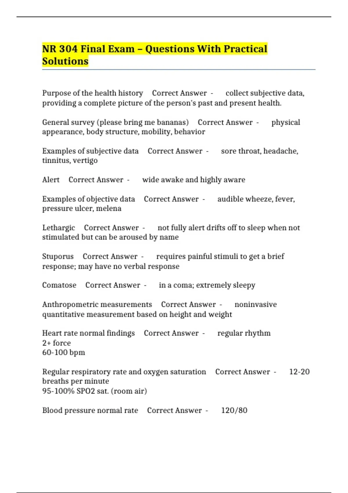 NR 304 Final Exam – Questions With Practical Solutions