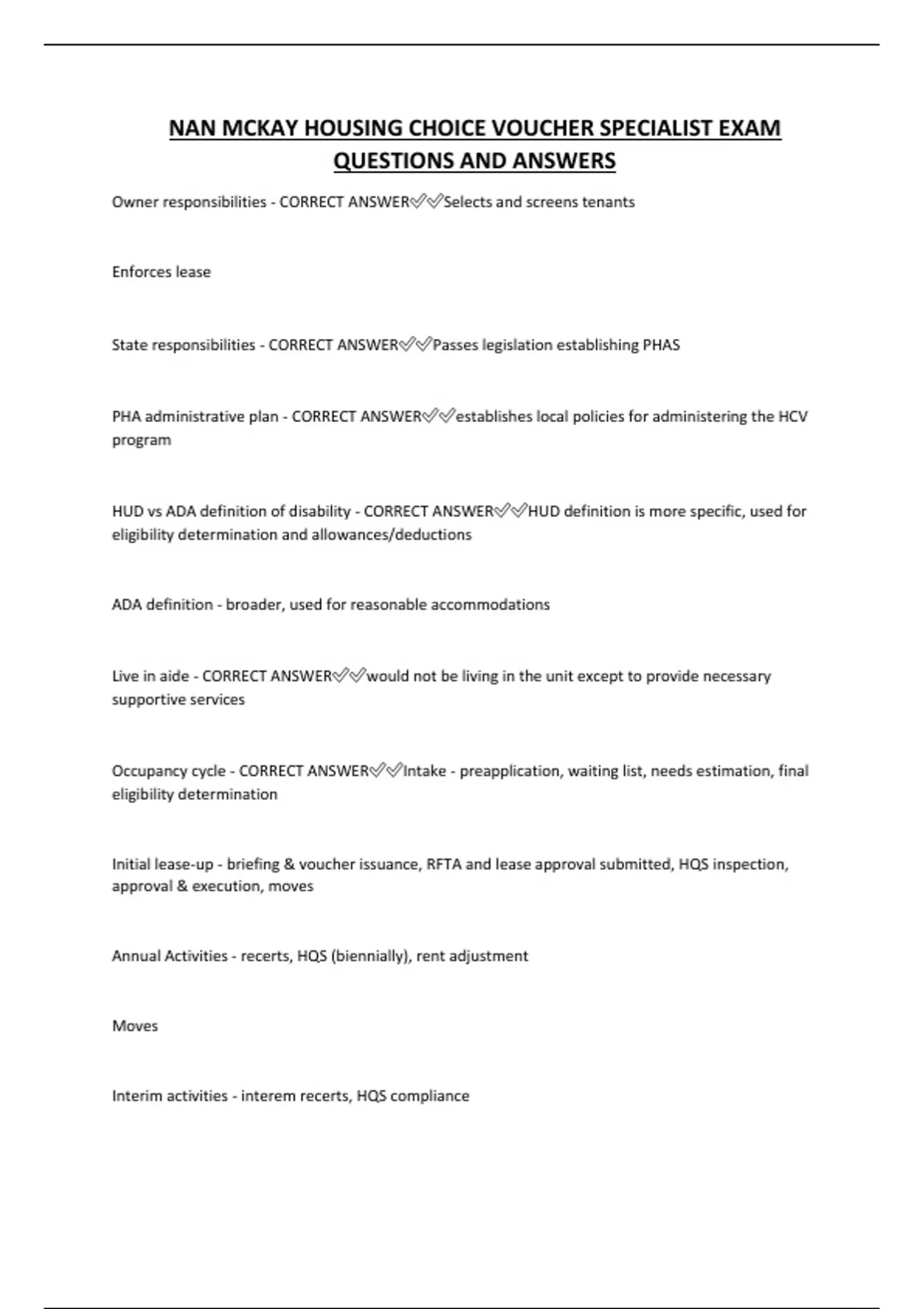 NAN MCKAY HOUSING CHOICE VOUCHER SPECIALIST EXAM
