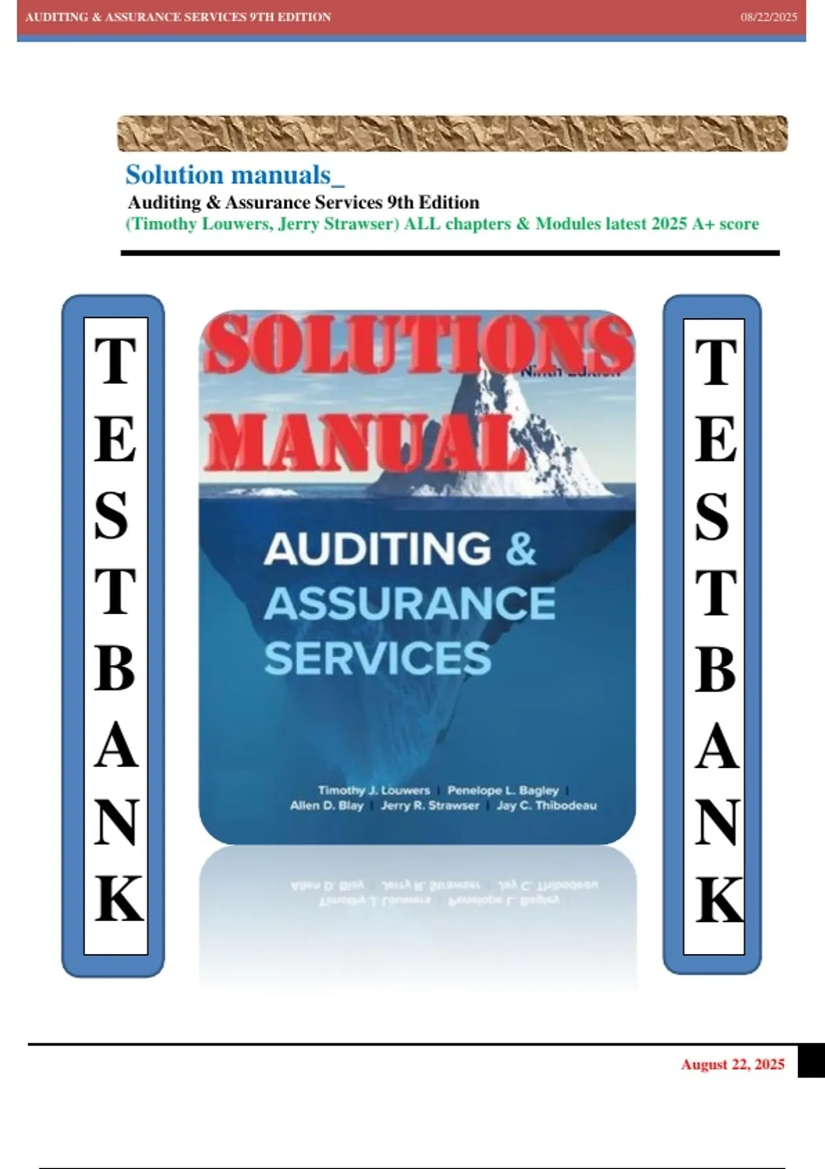 AUDITING & ASSURANCE SERVICES 9TH EDITION 08/22/2025