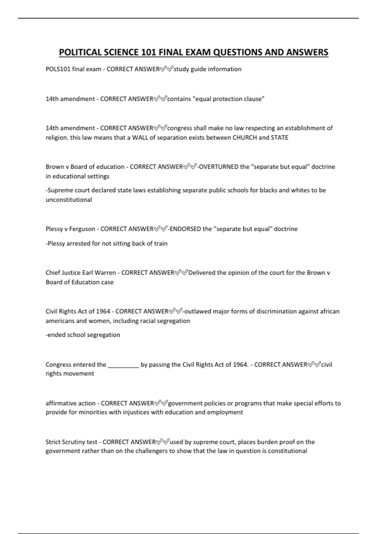 POLS101 final exam - CORRECT ANSWER✅✅study guide information