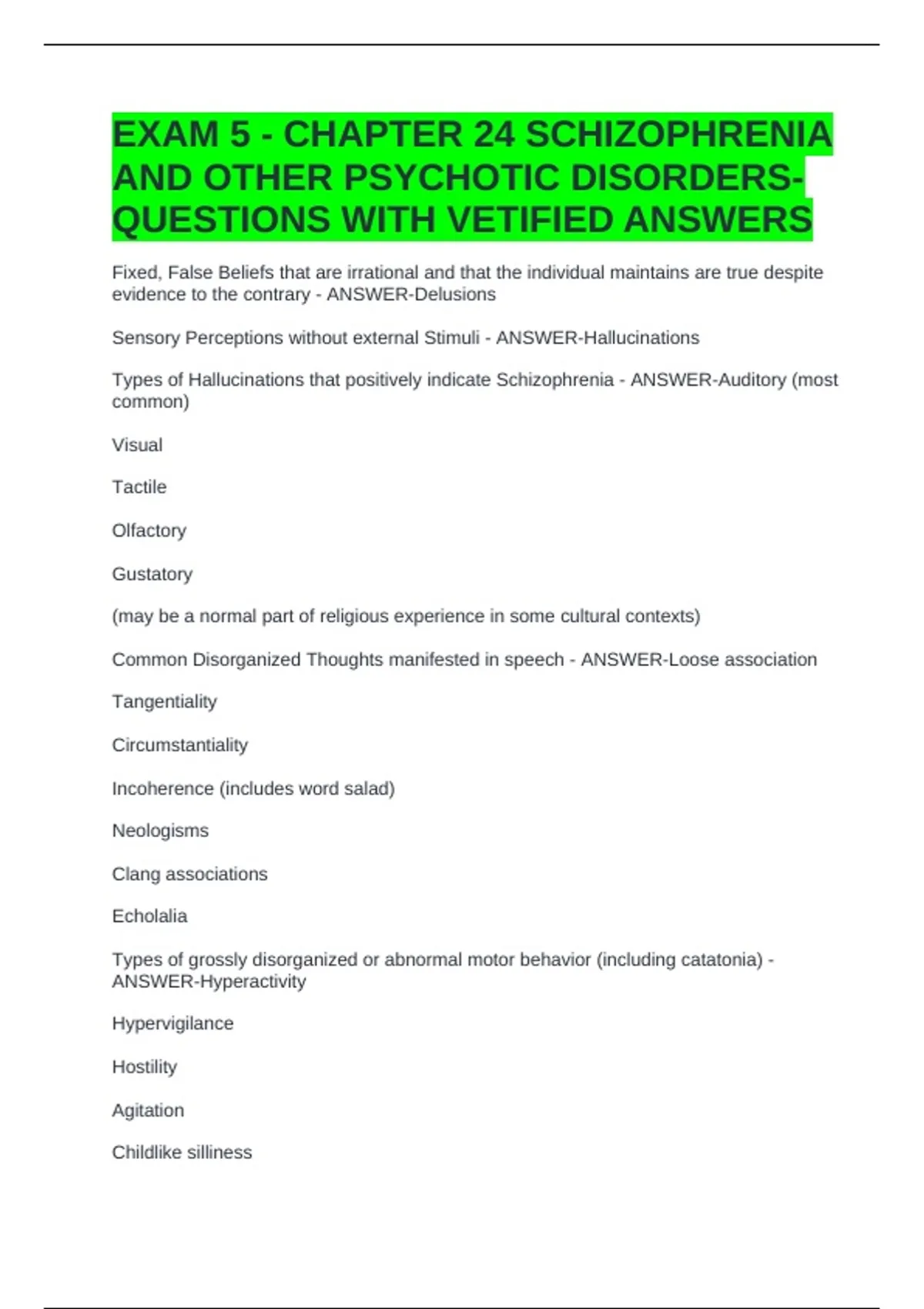 EXAM 5 - CHAPTER 24 SCHIZOPHRENIA