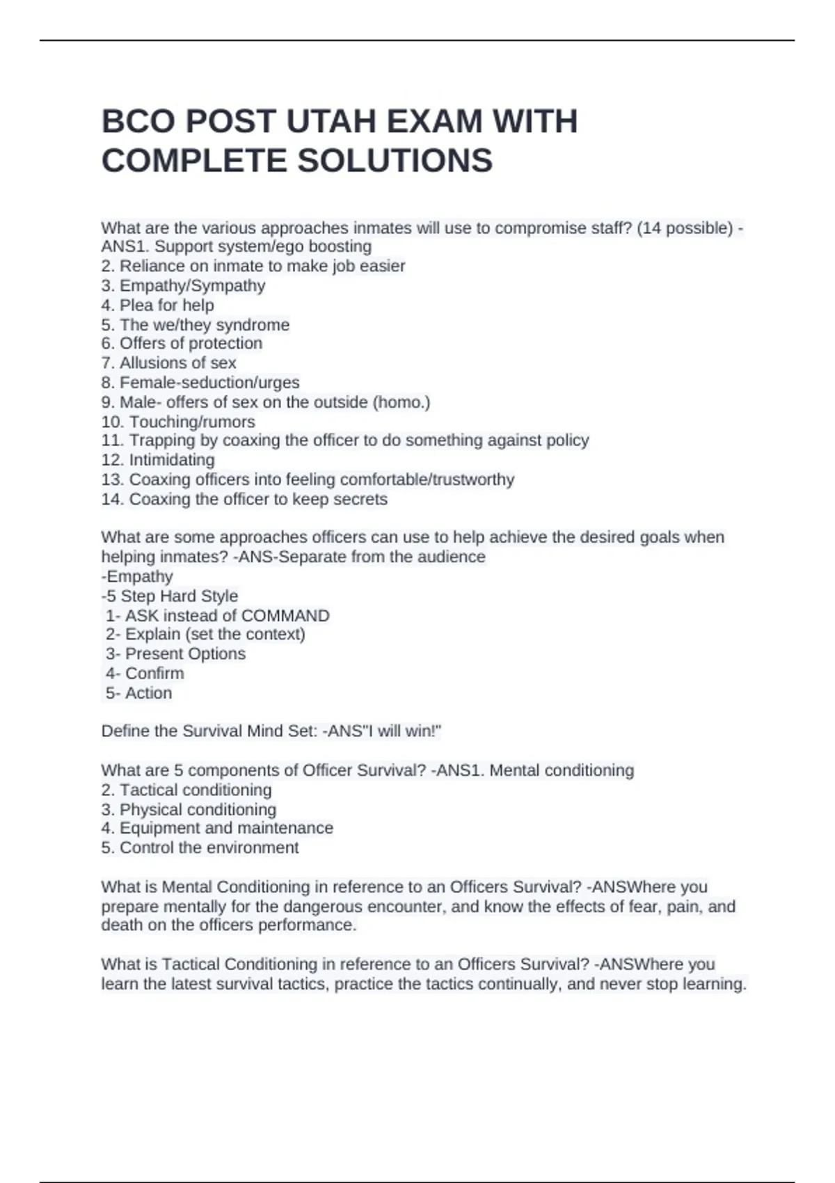 BCO POST UTAH EXAM WITH