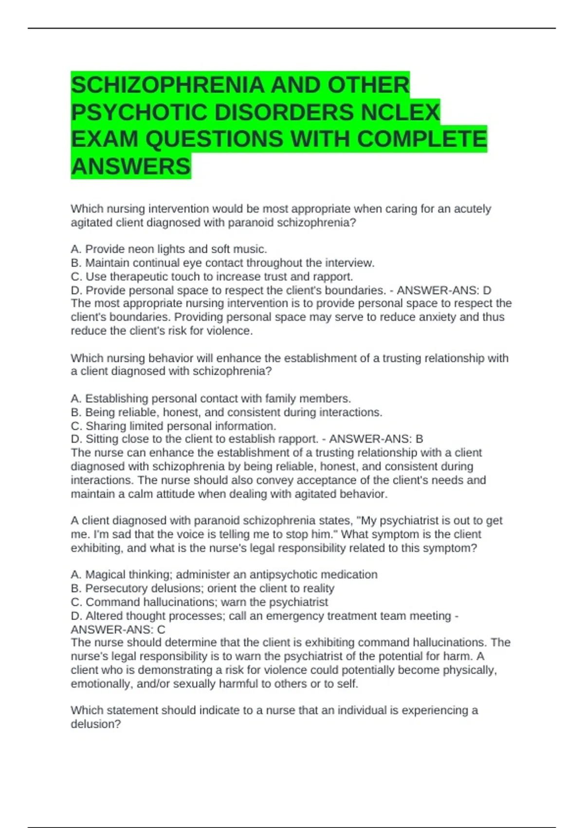 The nurse should recognize that a client who claims that an alien is inside his or her