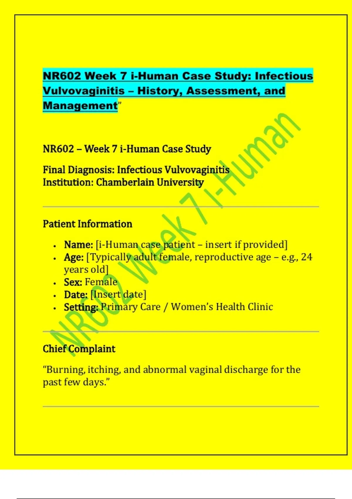 • Name: [i-Human case patient – insert if provided]