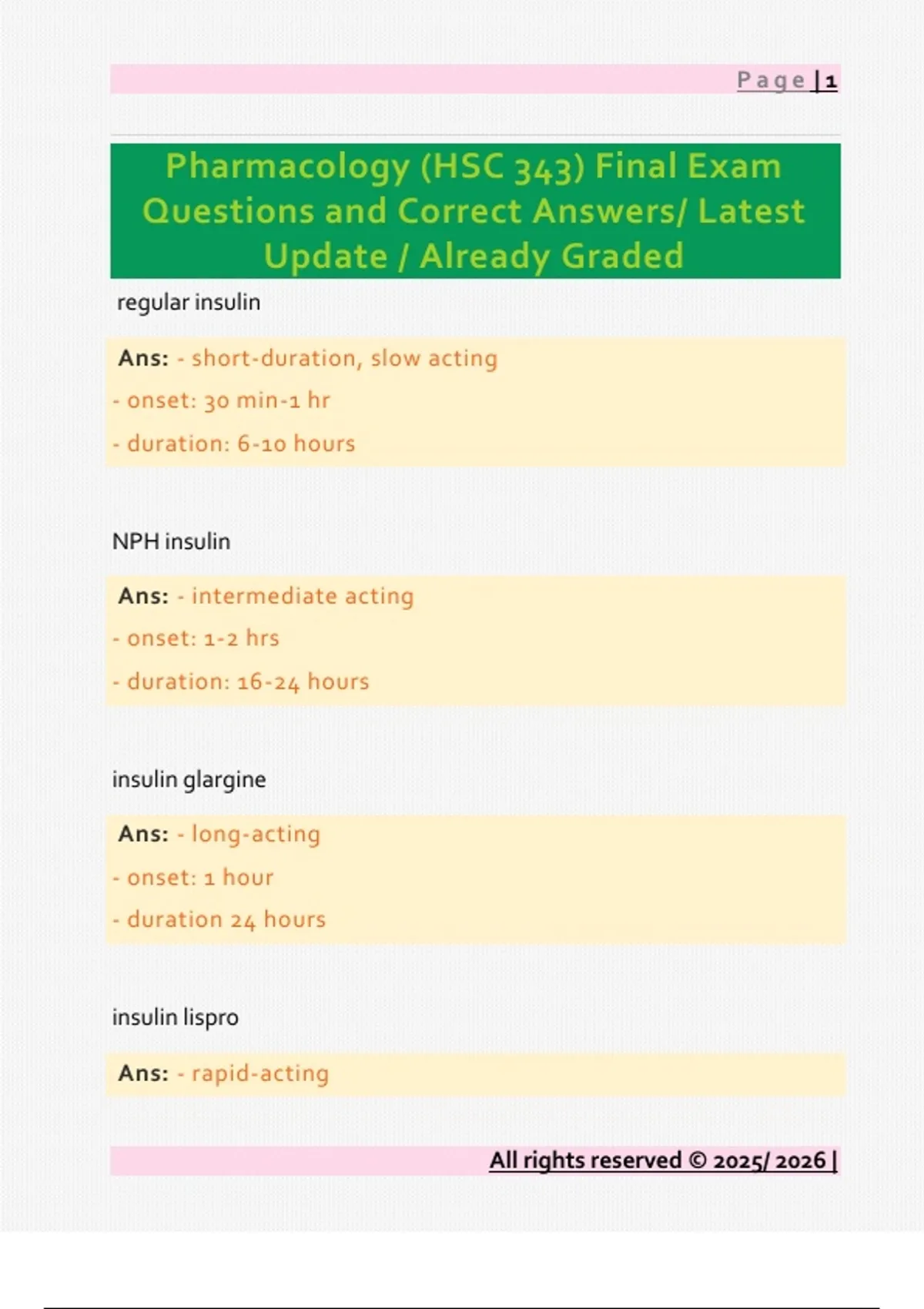Pharmacology (HSC 343) Final Exam Questions and Correct Answers/ Latest Update / Already Graded