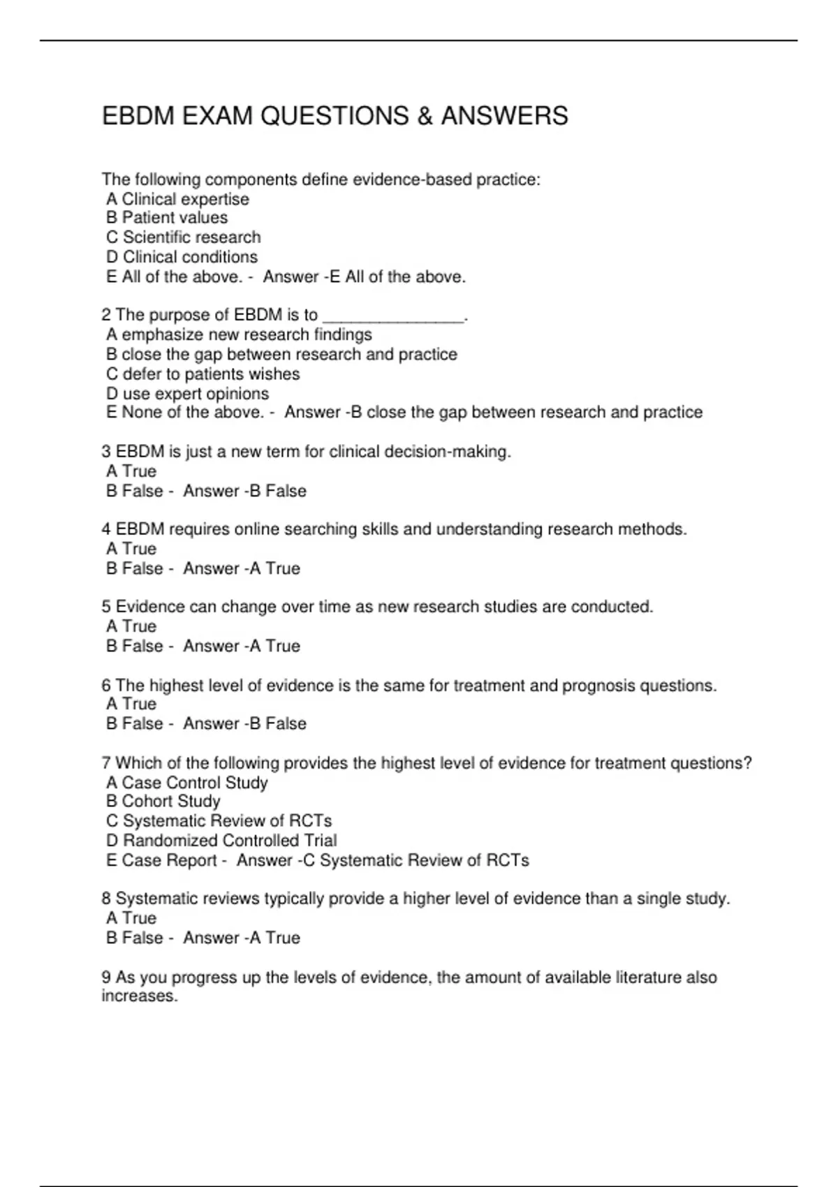 EBDM EXAM QUESTIONS & ANSWERS