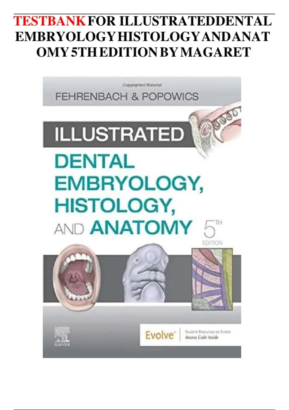 Test Bank For Illustrated Dental Embryology, Histology, and Anatomy 5th Edition by Margaret J. Fehrenbach; Tracy Popowics 9780323611077 Chapter 1-20