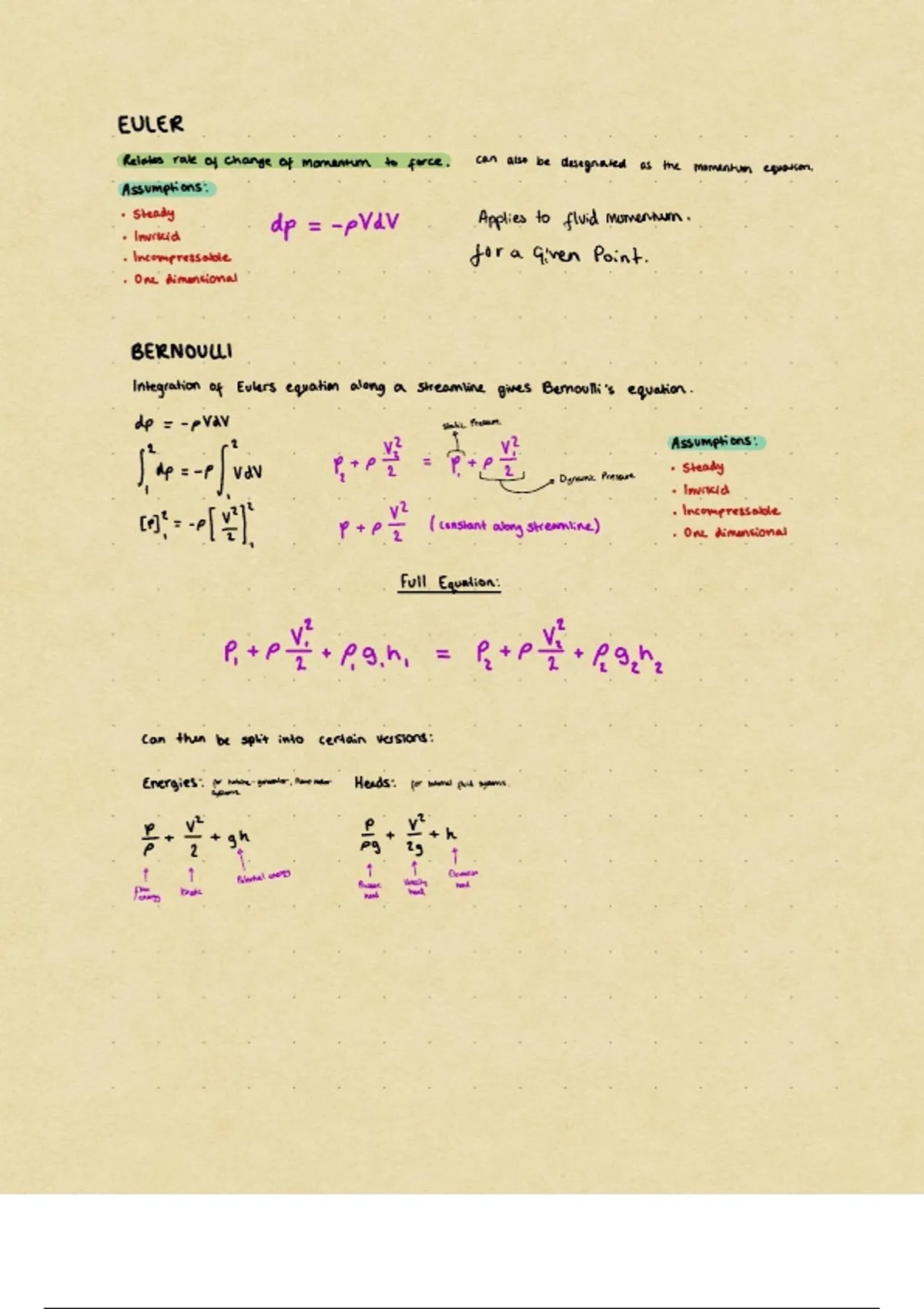 Euler & Bernoulli Equations – Aerospace Engineering Notes (Fluid Dynamics PDF)