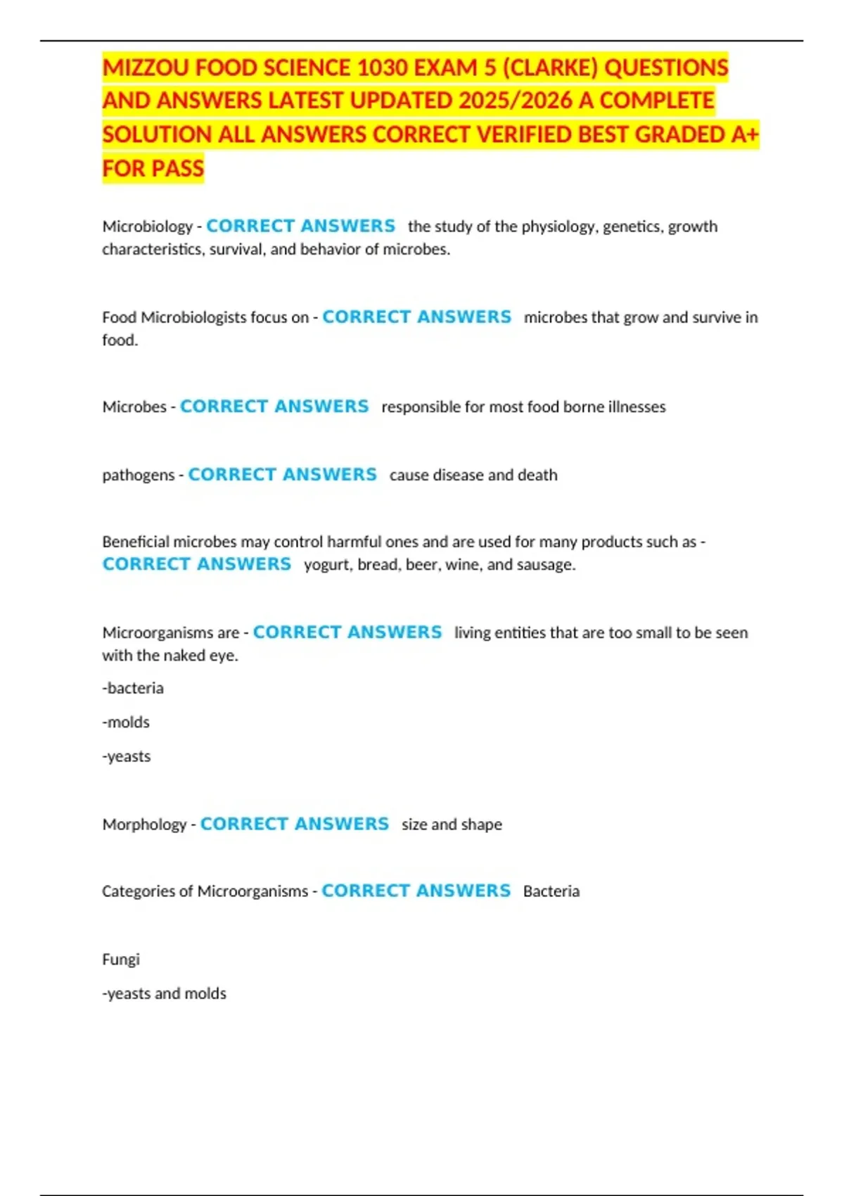 Categories of Microorganisms - CORRECT ANSWERS Bacteria
