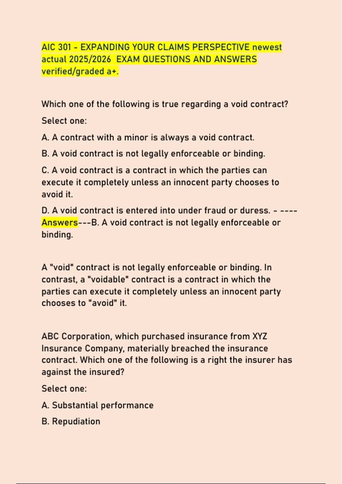 actual 2025/2026 EXAM QUESTIONS AND ANSWERS