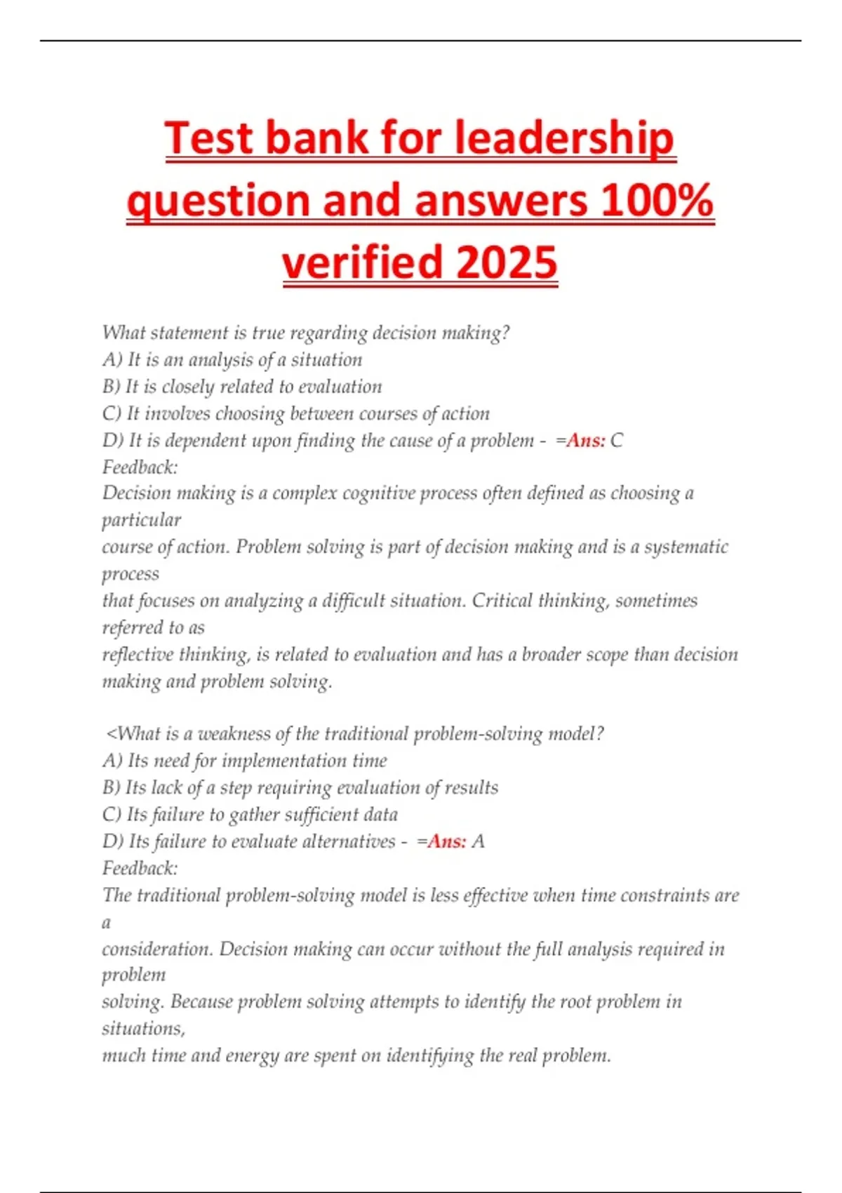 Test bank for leadership
