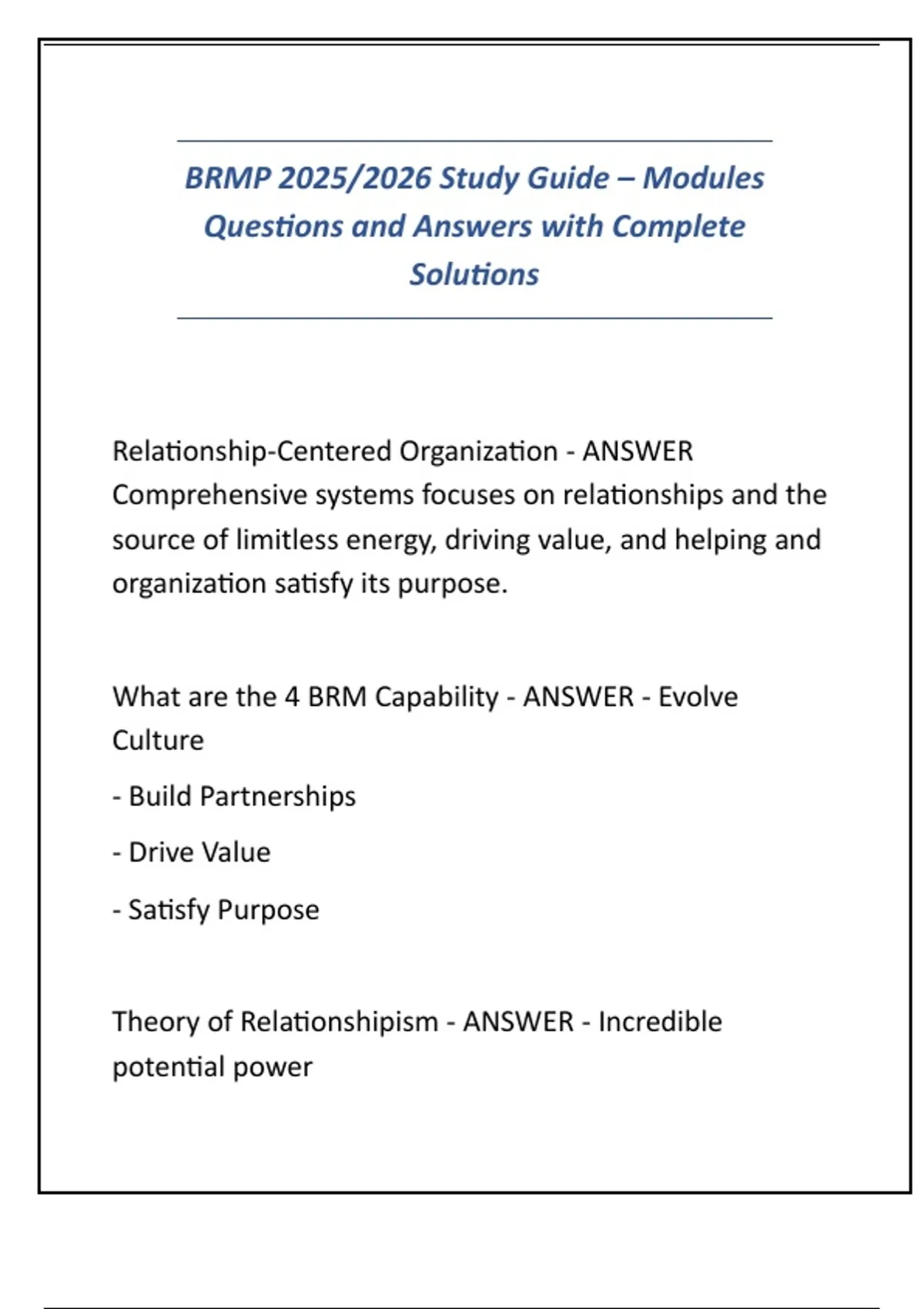 BRMP 2025/2026 Study Guide – Modules Questions and Answers with Complete Solutions