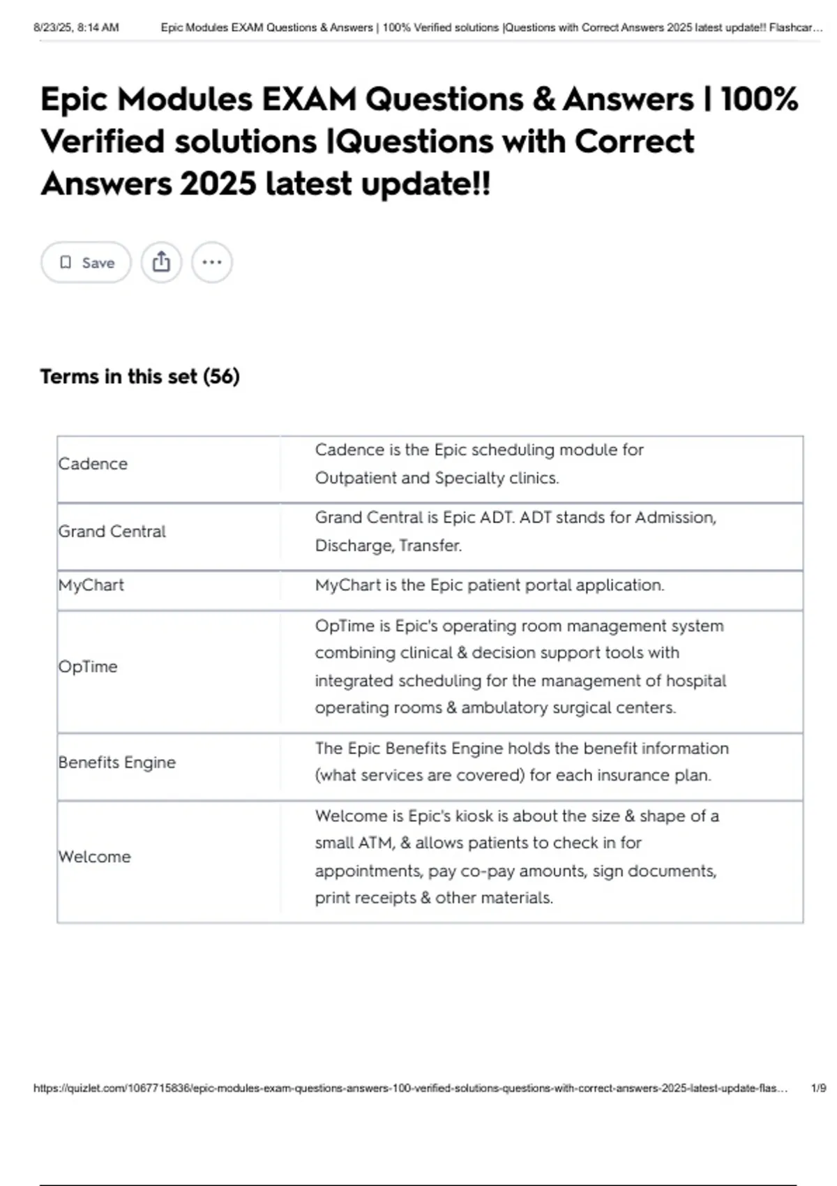 , 8/23/25, 8:14 AM Epic Modules EXAM Questions & Answers | 100% Verified solutions |Questions with Correct Answers 2025 latest update!! Flashcar…