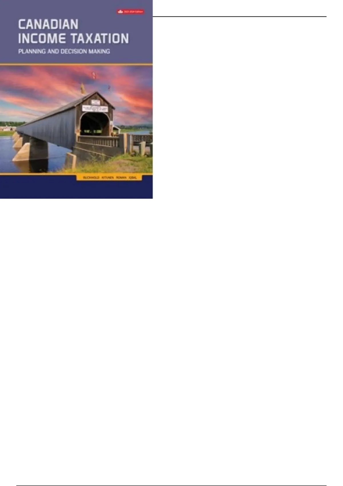 , Buckwold, Kitunen, Roman and Iqbal, Canadian Income Taxation, 2023-2024 Ed.
