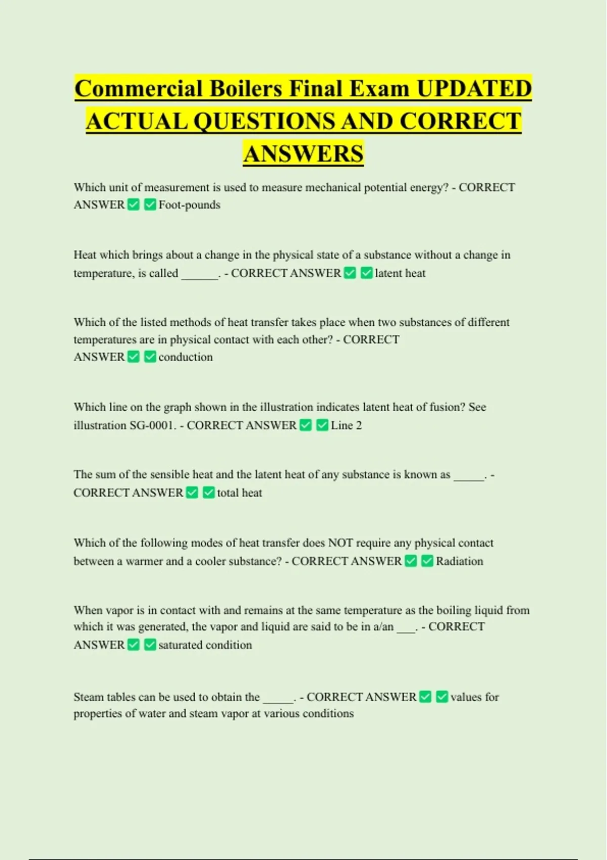 Commercial Boilers Final Exam UPDATED ACTUAL QUESTIONS AND CORRECT ANSWERS