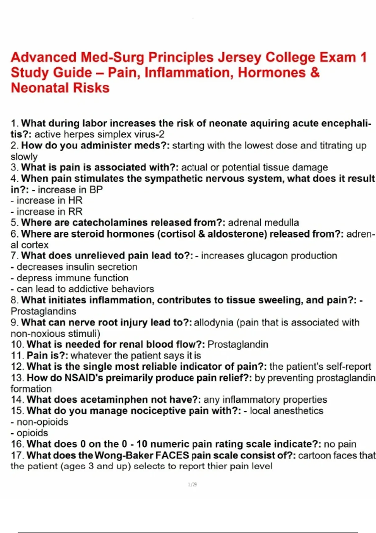 Advanced Med-Surg Principles Jersey College Exam 1 Study Guide – Pain, Inflammation, Hormones & Neonatal Risks.pdf