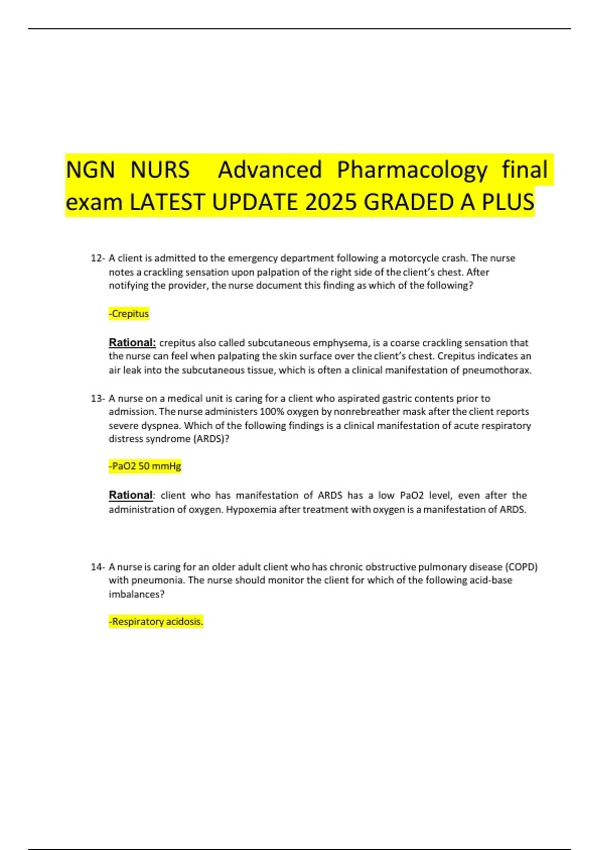 NGN NURS Advanced Pharmacology final exam LATEST UPDATE 2025 GRADED A PLUS