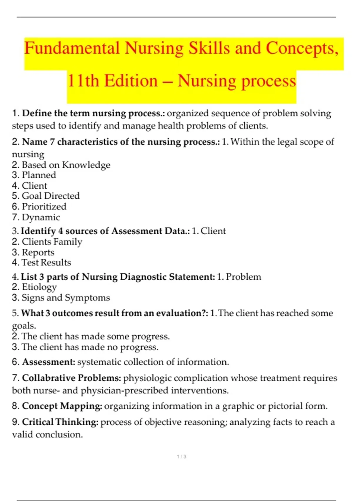 Summary Fundamental Nursing Skills and Concepts, 11th Edition – Nursing process