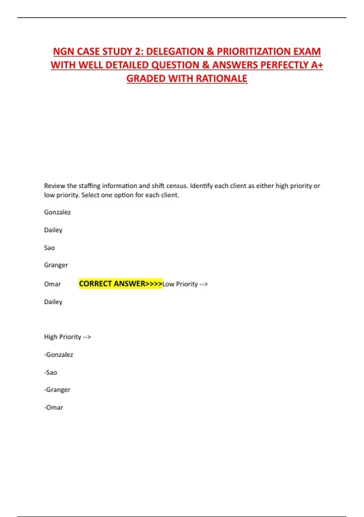 NGN CASE STUDY 2: DELEGATION & PRIORITIZATION EXAM