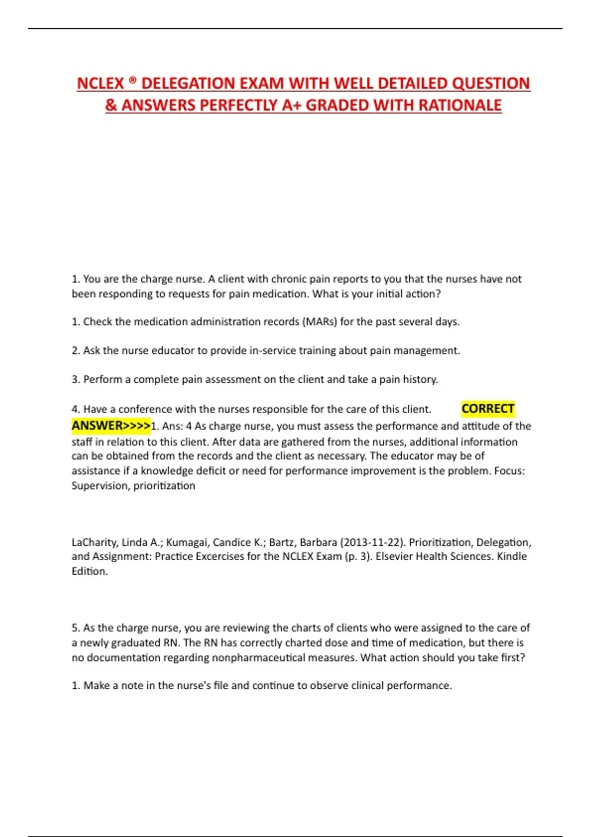 NCLEX ® DELEGATION EXAM WITH WELL DETAILED QUESTION