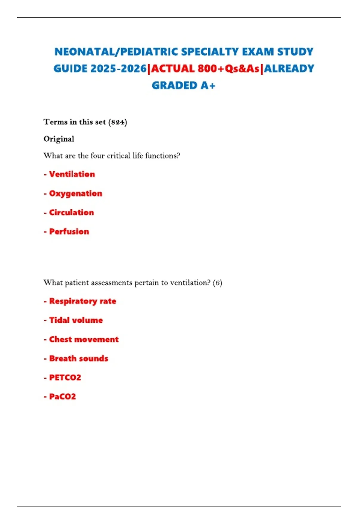NEONATAL/PEDIATRIC SPECIALTY EXAM STUDY GUIDE |ACTUAL 800+Qs&As|ALREADY GRADED A+