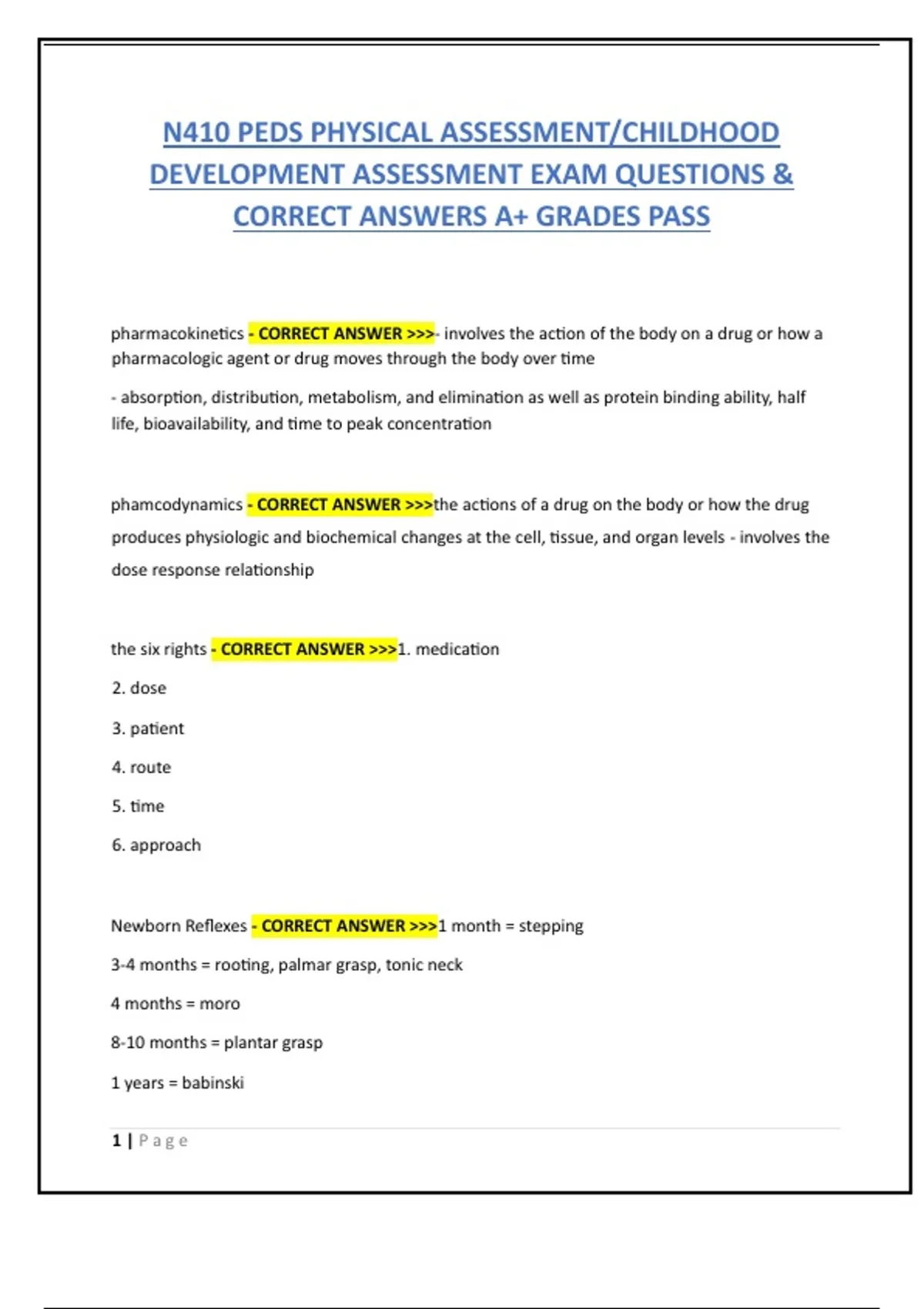 N410 PEDS PHYSICAL ASSESSMENT/CHILDHOOD