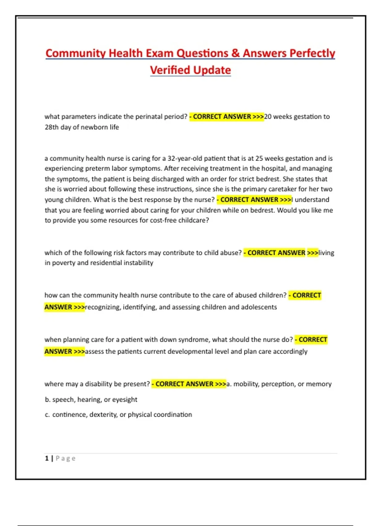 Community Health Exam Questions & Answers Perfectly