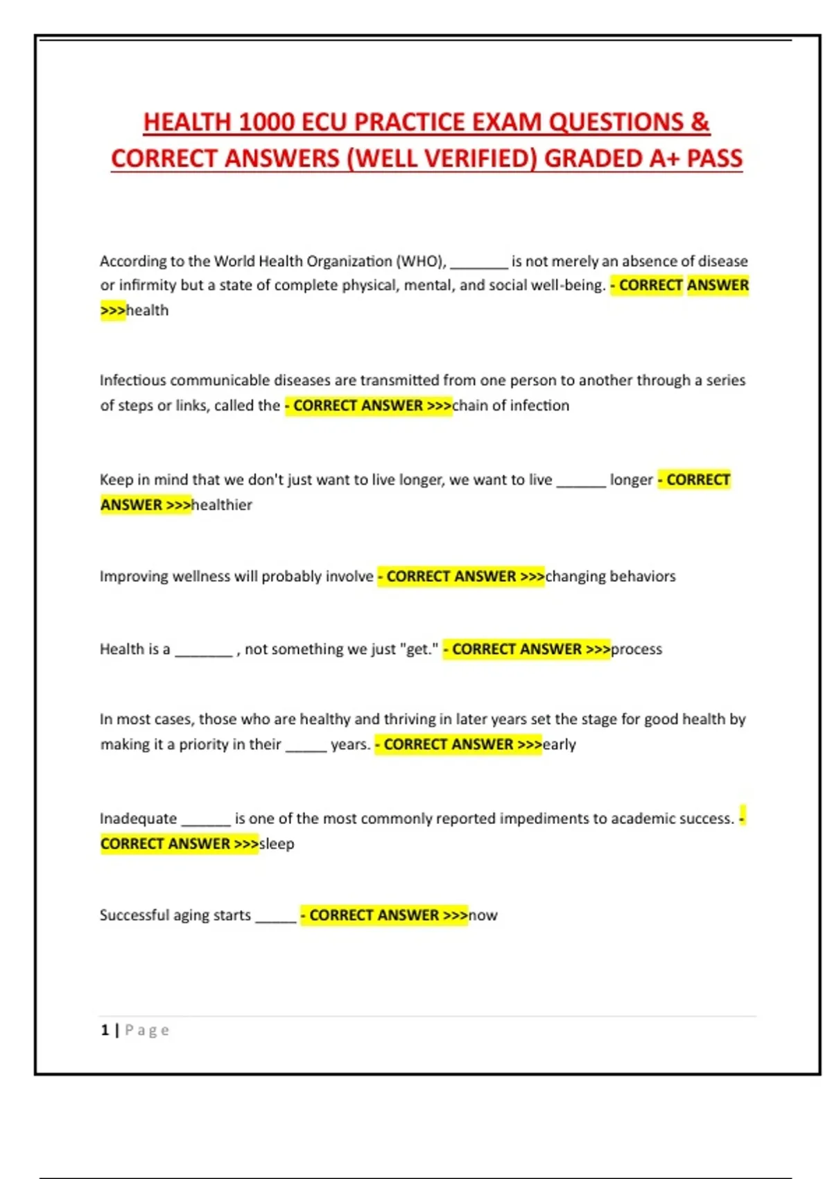 HEALTH 1000 ECU PRACTICE EXAM QUESTIONS &