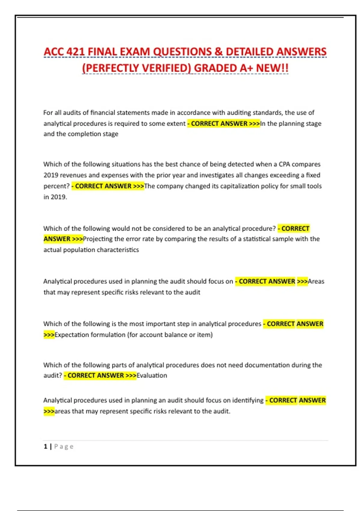 ACC 421 FINAL EXAM QUESTIONS & DETAILED ANSWERS