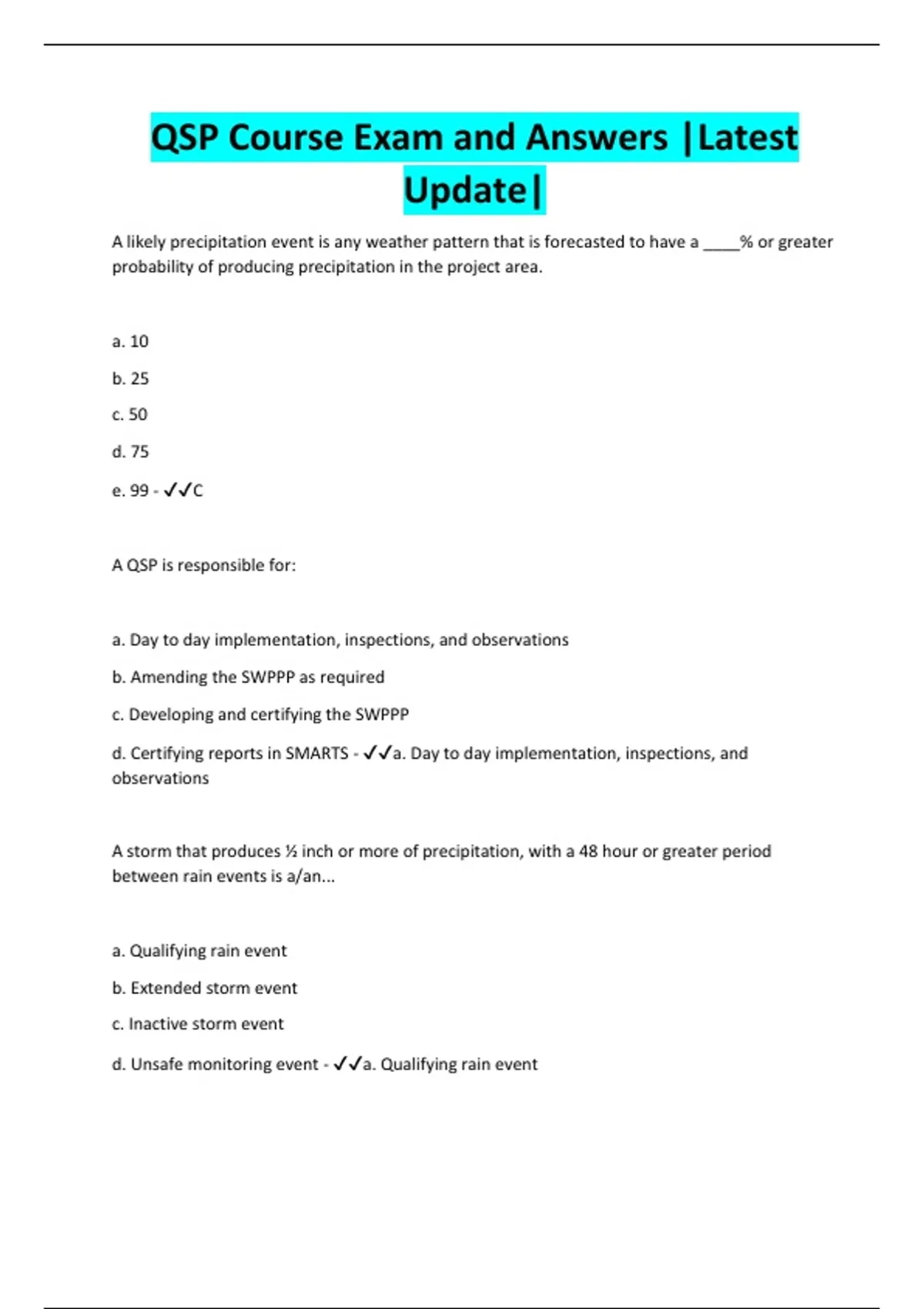 d. Unsafe monitoring event - ✔✔a. Qualifying rain event