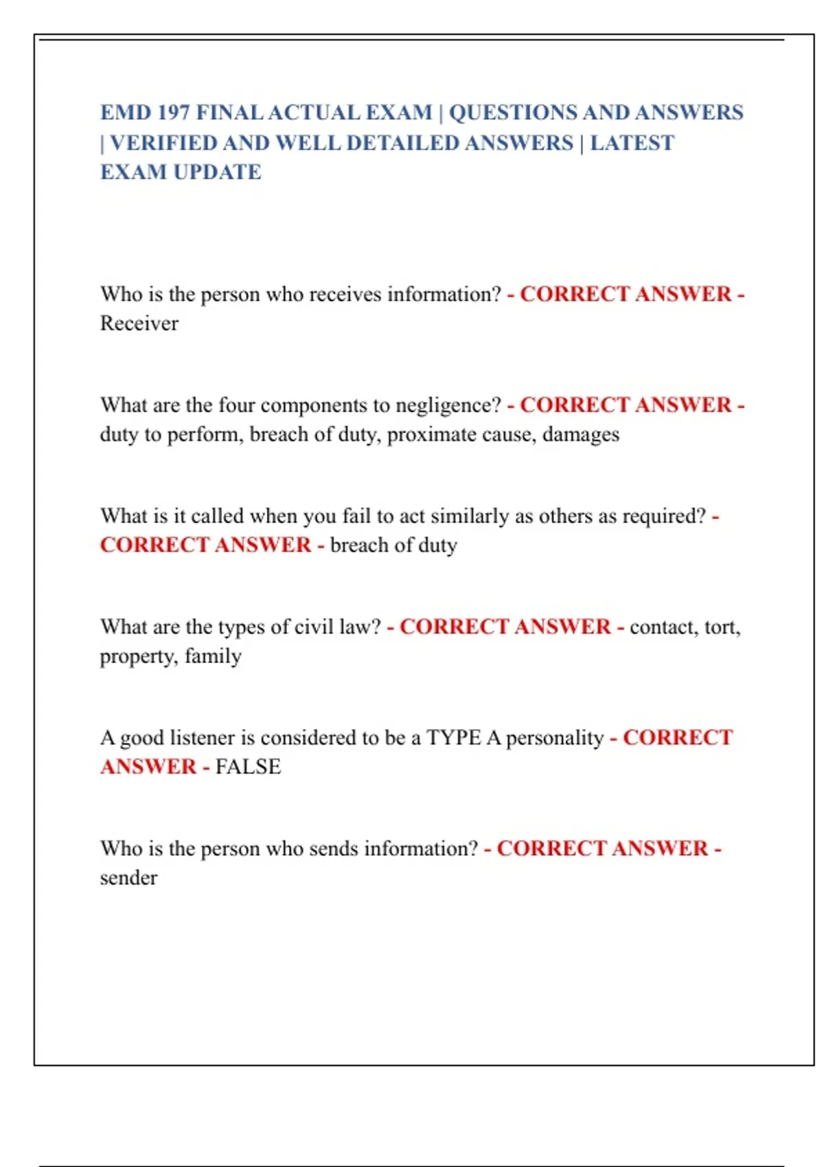 EMD 197 FINAL ACTUAL EXAM | QUESTIONS AND ANSWERS